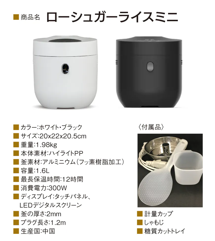 この度は低糖質炊飯器”ローシュガーライスミニ”をご紹介させていただきます。