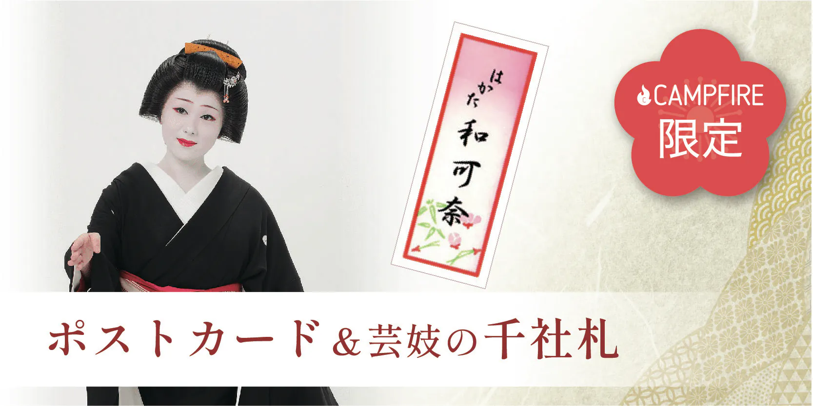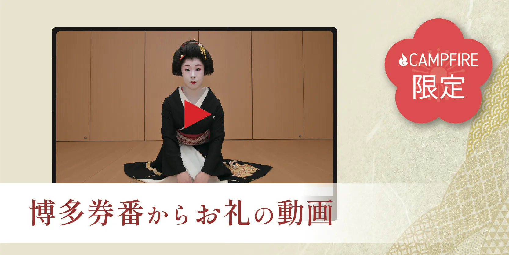 この度、各方面の方々のお力をお借りして博多券番としてクラウドファンディングをさせて頂くことになりました。沢山の方に博多芸妓を知って頂く機会をつくり、また、芸妓文化の継承にご支援を賜りたいと思っております。お力を貸して頂ければ幸いに存じます。私どもも芸を磨き、皆様方にひとときの安らぎを味わって頂ければと精進いたします。