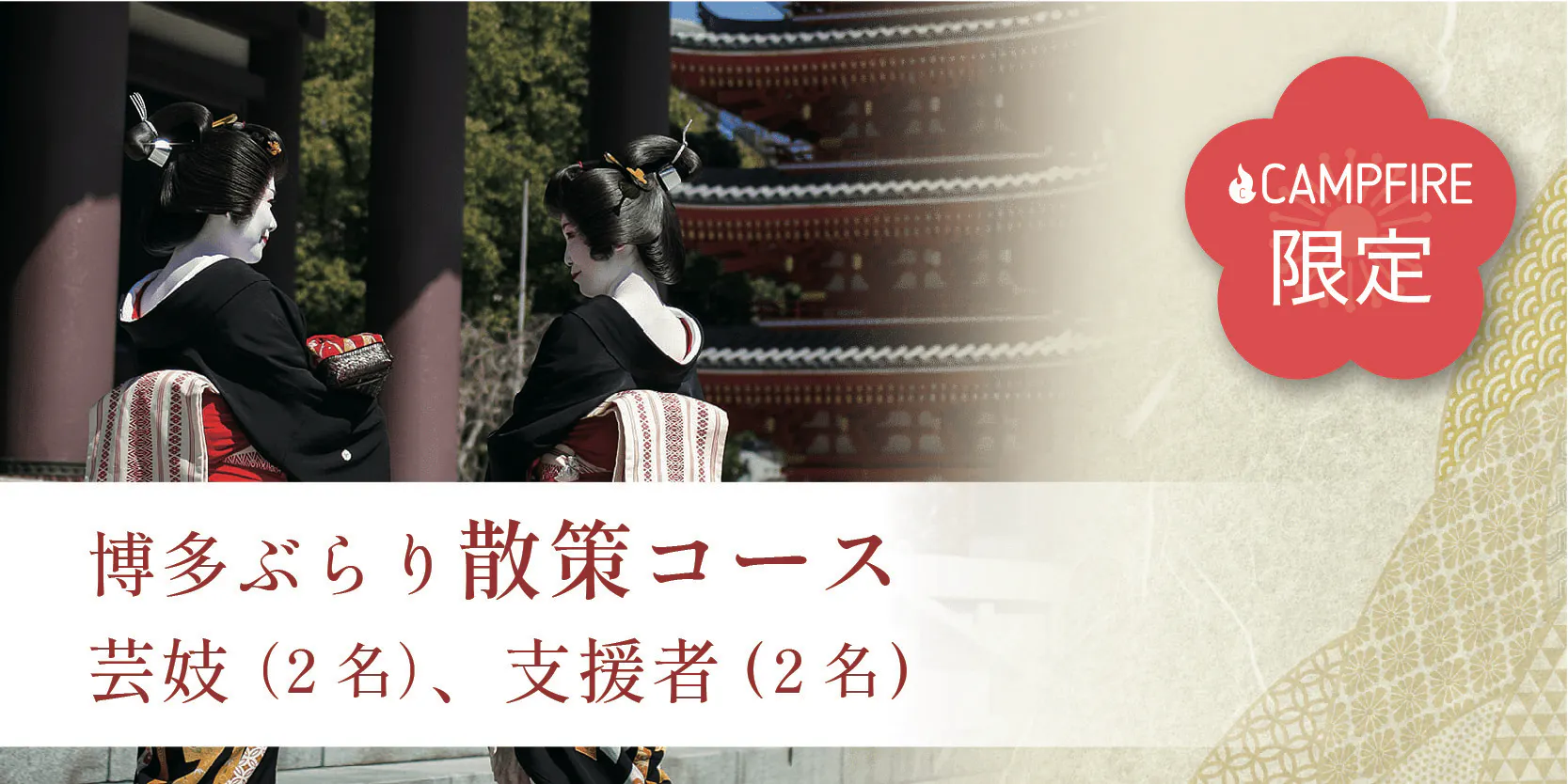 500,000円 博多ぶらり散策コース芸妓(2名)、支援者(2名)