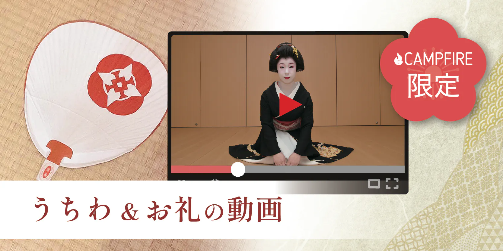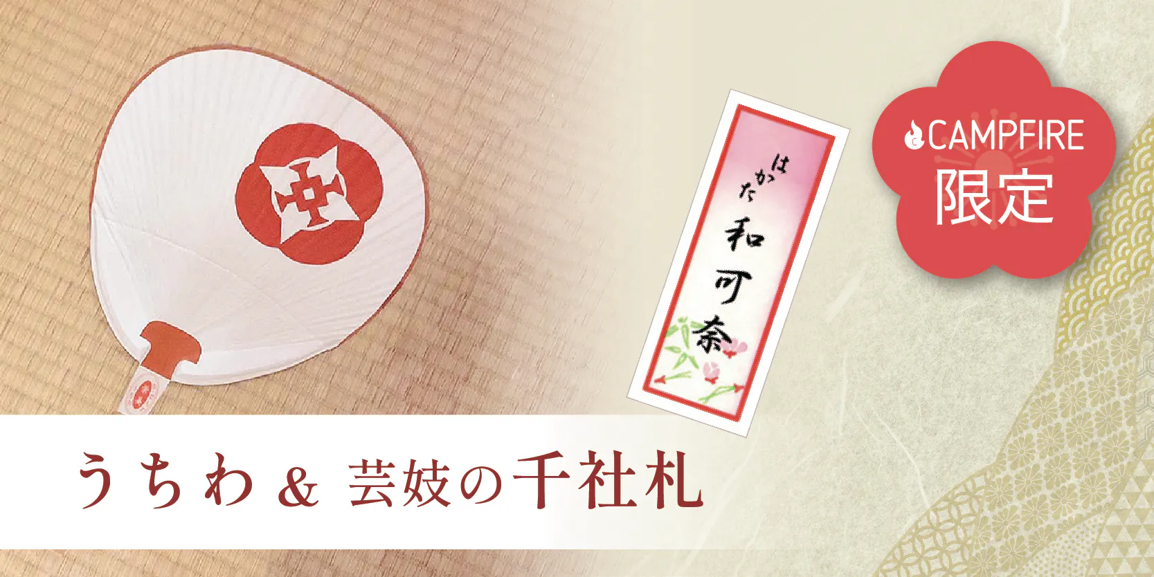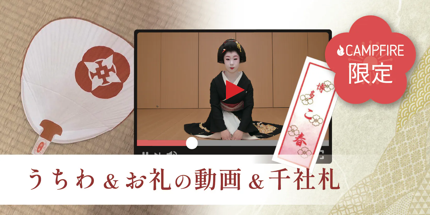 100,000円 【ただただ応援プラン】お礼の動画+博多券番オリジナル団扇+芸妓の千社札
