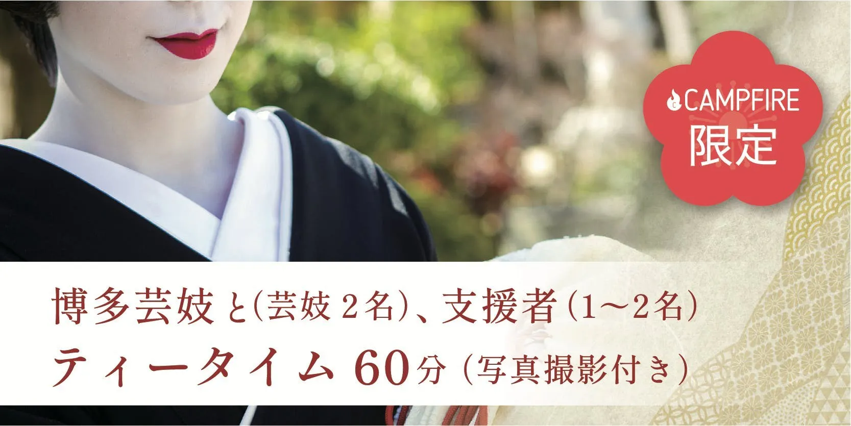 300,000円 博多芸妓と(芸妓2名)、支援者(1~2名)ティータイム60分(写真撮影付)
