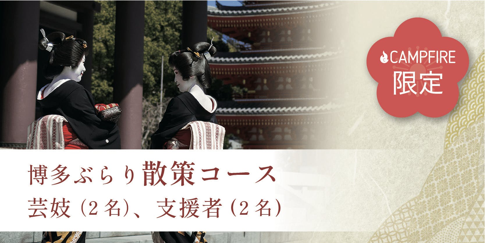 500,000円 博多ぶらり散策コース芸妓(2名)、支援者(2名)