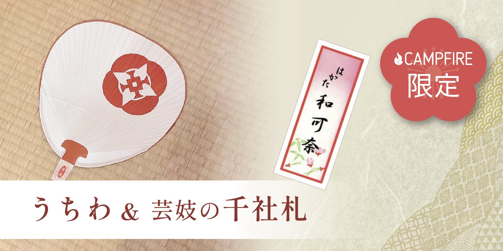 100,000円 【ただただ応援プラン】お礼の動画+博多券番オリジナル団扇+芸妓の千社札