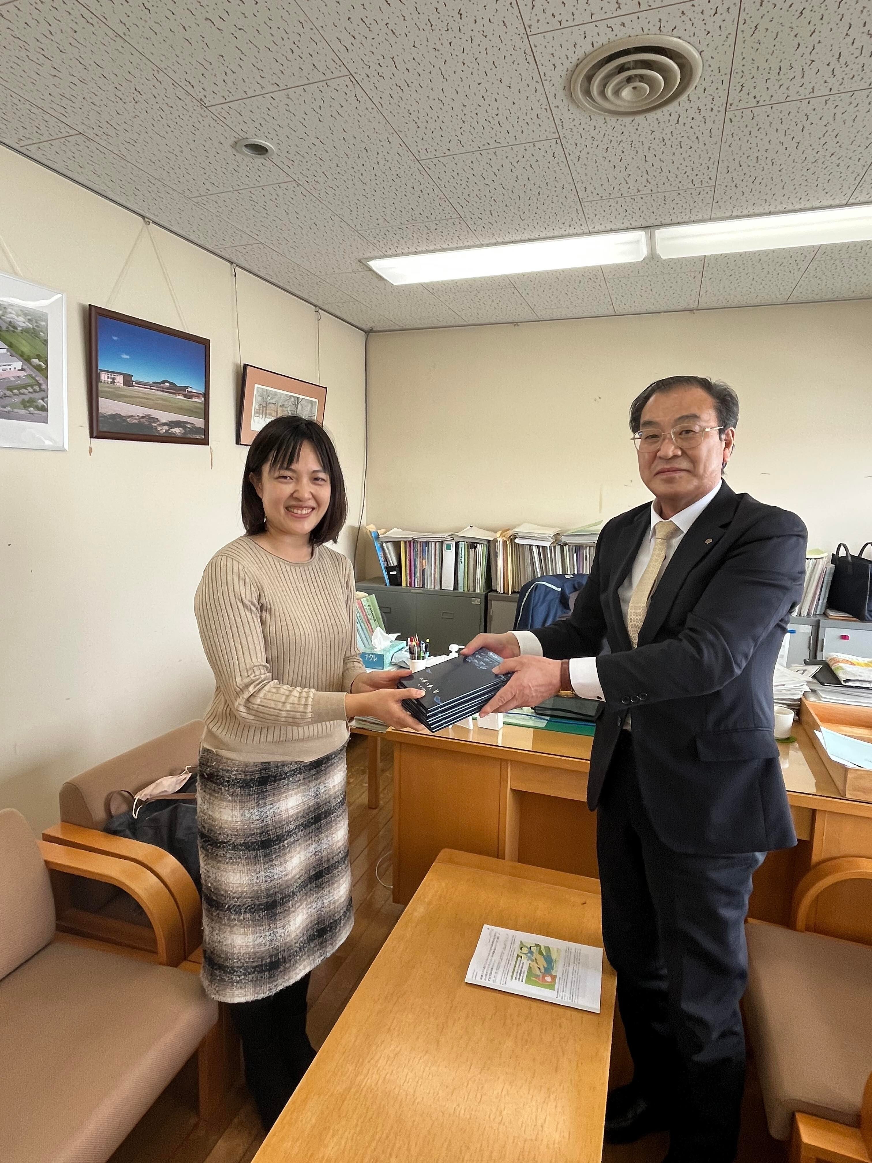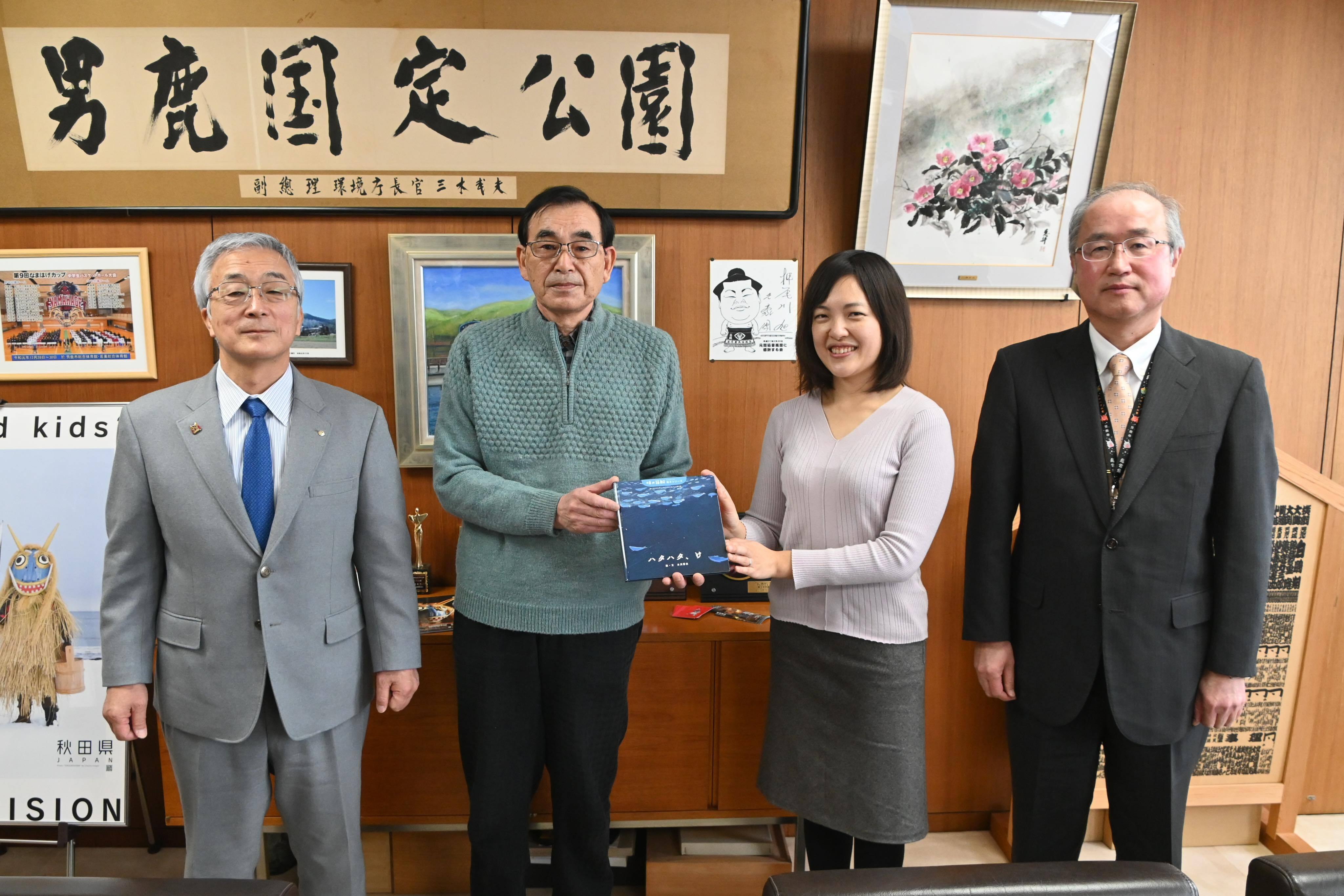 2/14に男鹿市、2/16に五城目町の教育委員会へ、地域コーディネーターの丑田さんや、しょっつる生産者の諸井さんが直接お渡しに行ってくれました。以降、八峰町への寄贈も予定しています。