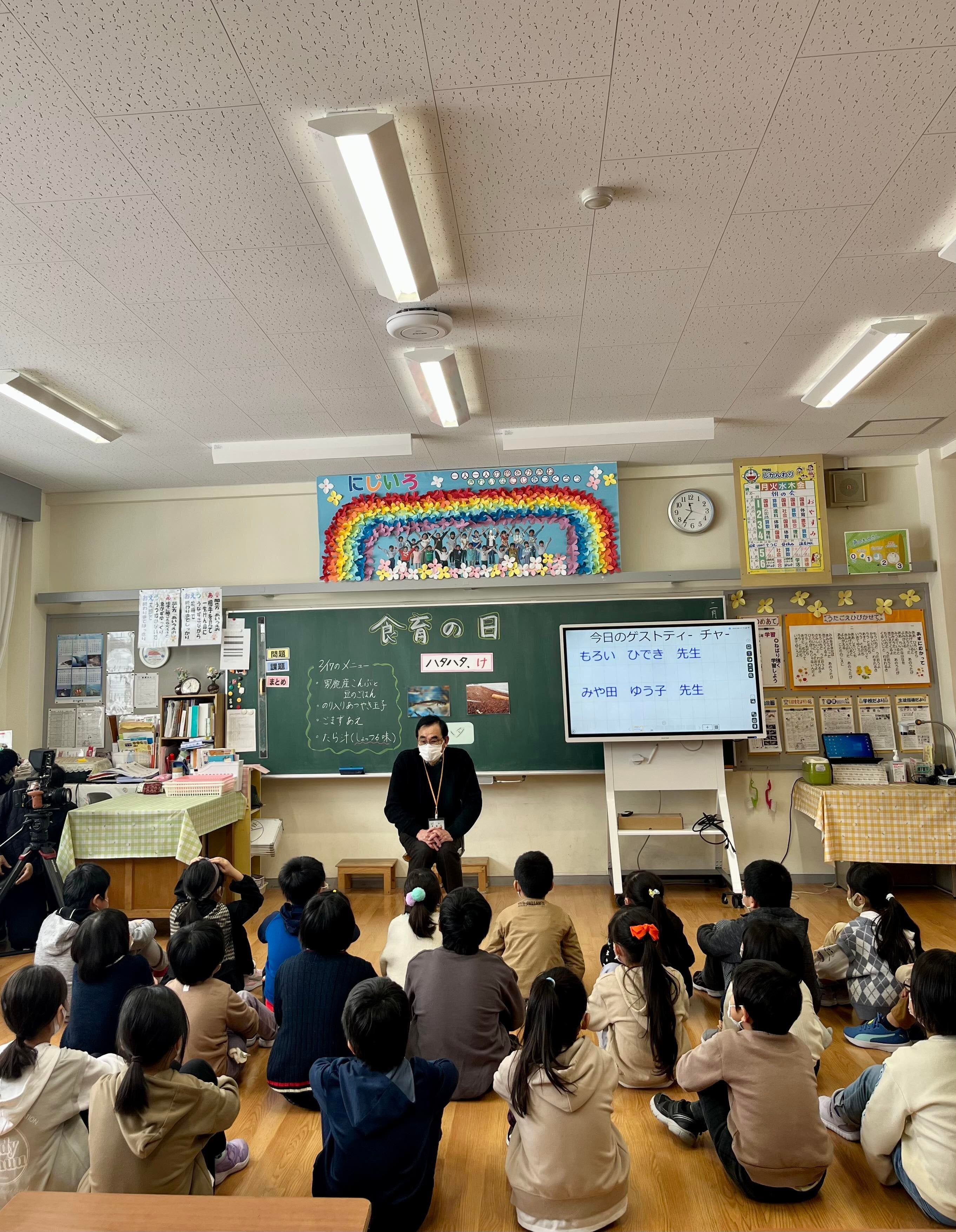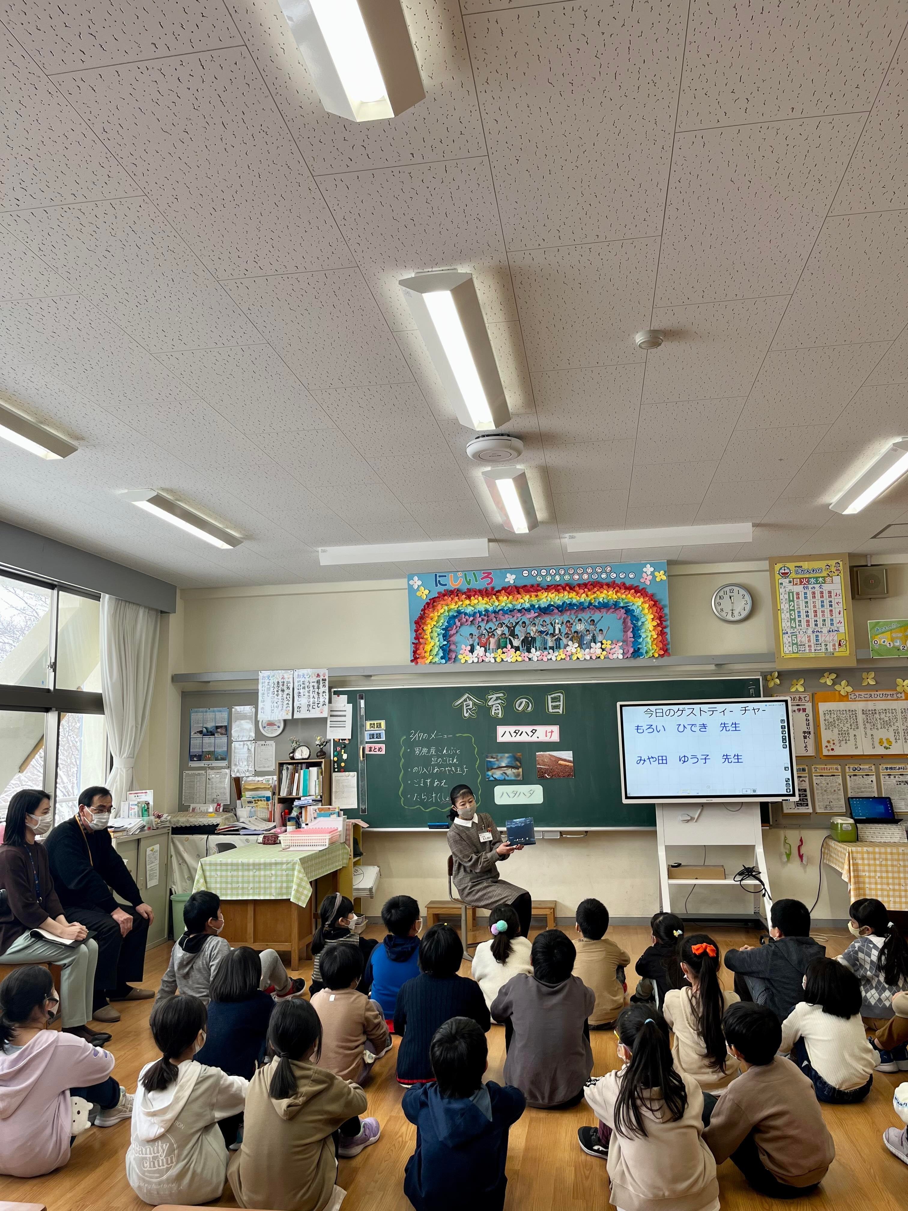 また、昨日2/17には、男鹿市の船川第一小にて、栄養教諭の方のご協力のもと、給食の時間にしょっつるが提供される際に、絵本の読み聞かせと諸井さんによるしょっつるのお話がおこなわれました。