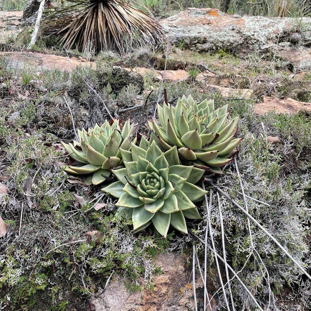 標高2000m以上の場所からスタートの登山で写真を撮った場所に行き、実物のエケベリアを見せて頂きました。