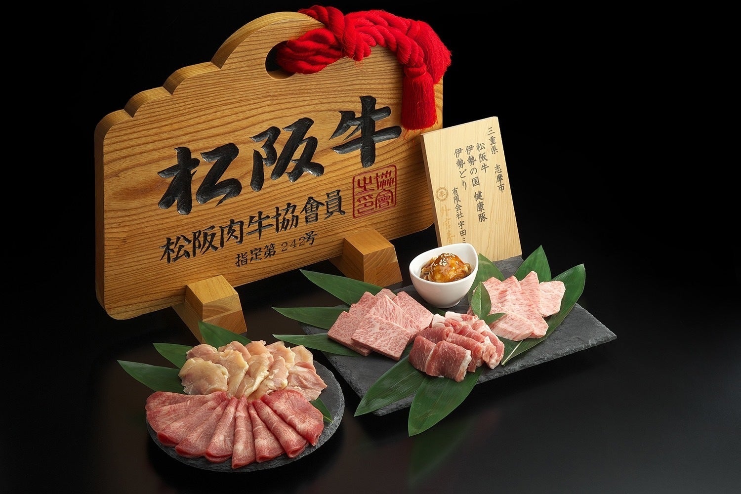 松坂牛のカルビ、肩ロース、ホルモンの他、伊勢の国健康豚肩ロース、伊勢どりモモ、ウィンナーがセットになっています。