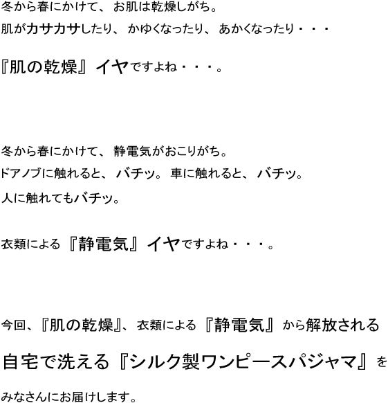 ☆この「シルク製ワンピースパジャマ」は『一年中』着ることができます。