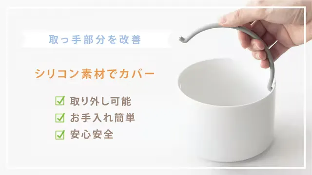 取っ手部分を工夫しました:衛生面を考慮してシリコン素材でカバーしました