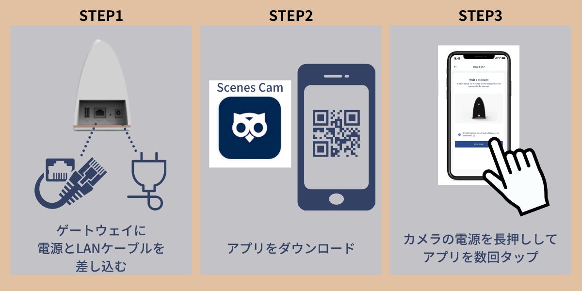 設定はカンタン3ステップ。Scenes Oneが届いたらすぐにお使いいただけます。