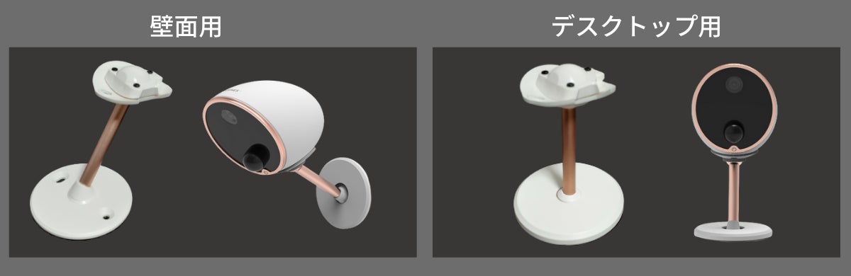 カメラ取付け用のマウントは、1つのカメラにつき「壁面用」と「デスクトップ用」の2種類を同梱しております。用途や取付位置により使い分けください。