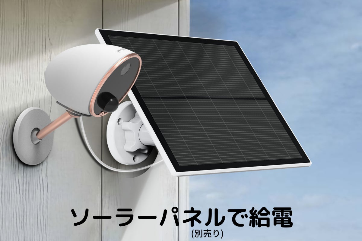 ソーラーパネル(別売り)をつければ電源コードの配線もいらず、カメラを取り外して充電する必要もなく放置したままお使いいただけます。