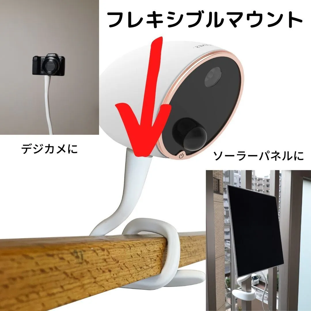 フレキシブルマウントはカメラだけでなく、ソーラーパネル、一般的なデジカメやビデオカメラにも装着することができます。