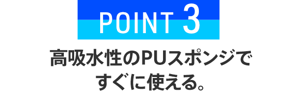 また、スポンジ部分の材質が今まではPVAという材質でした。これは使用したい時に硬くなってしまっているモップを5分以上水につけておき、スポンジを水に慣らしてから使用するのですが、本モデルのPUスポンジはそのまま数回、水を含ましてすぐに使用できるのでとても便利です。