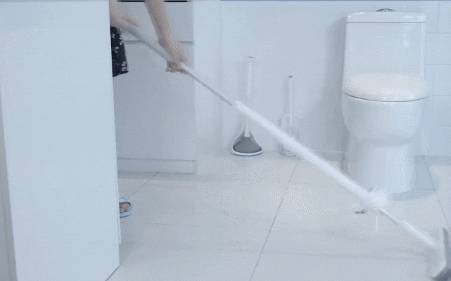 お風呂やトイレのタイルに散らかった髪の毛や、リビングのフローリングで厄介なホコリやペットの毛も、吸着力に優れた【クイックリーモップ】のスポンジなら簡単に拭き取れます。
