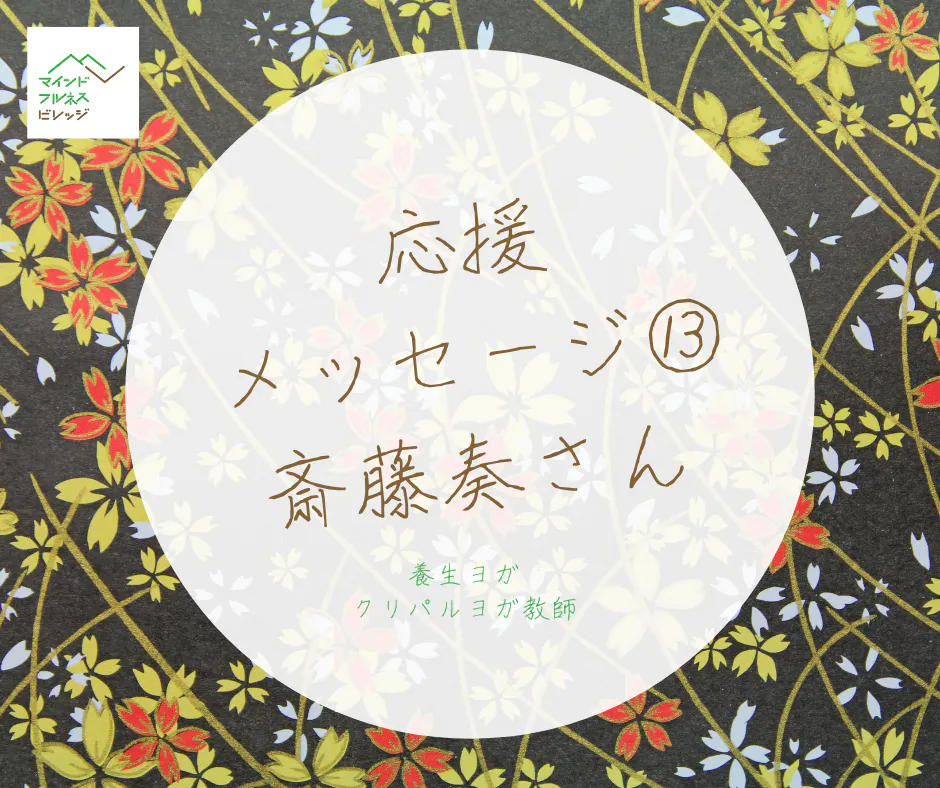 本日は、22日の「養生ヨガ」講師の斎藤奏さんより応援メッセージをいただきました!