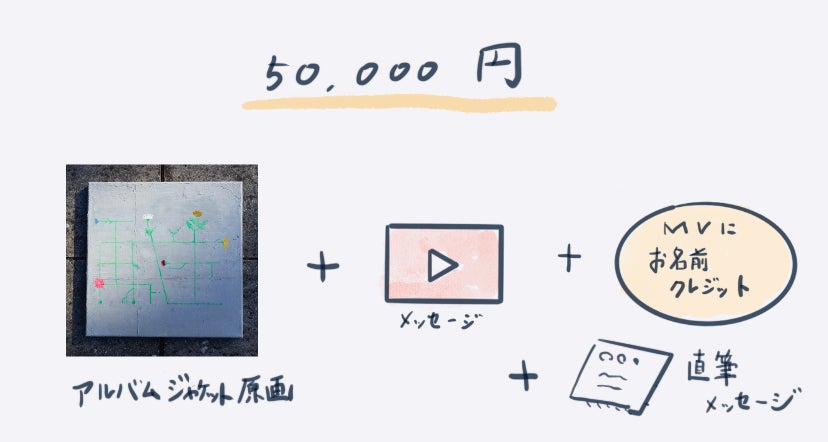 バンド解散・コロナ禍が重なり、ライブ活動ができなくなった私は、自分自身の表現について見つめ直しました。元々好きだった絵を描いてみたり(今回リターンに含めています。)、弾き語りをしたり、生配信をしたり、Youtubeで映像を作ったり・・・様々なことにチャレンジしました。