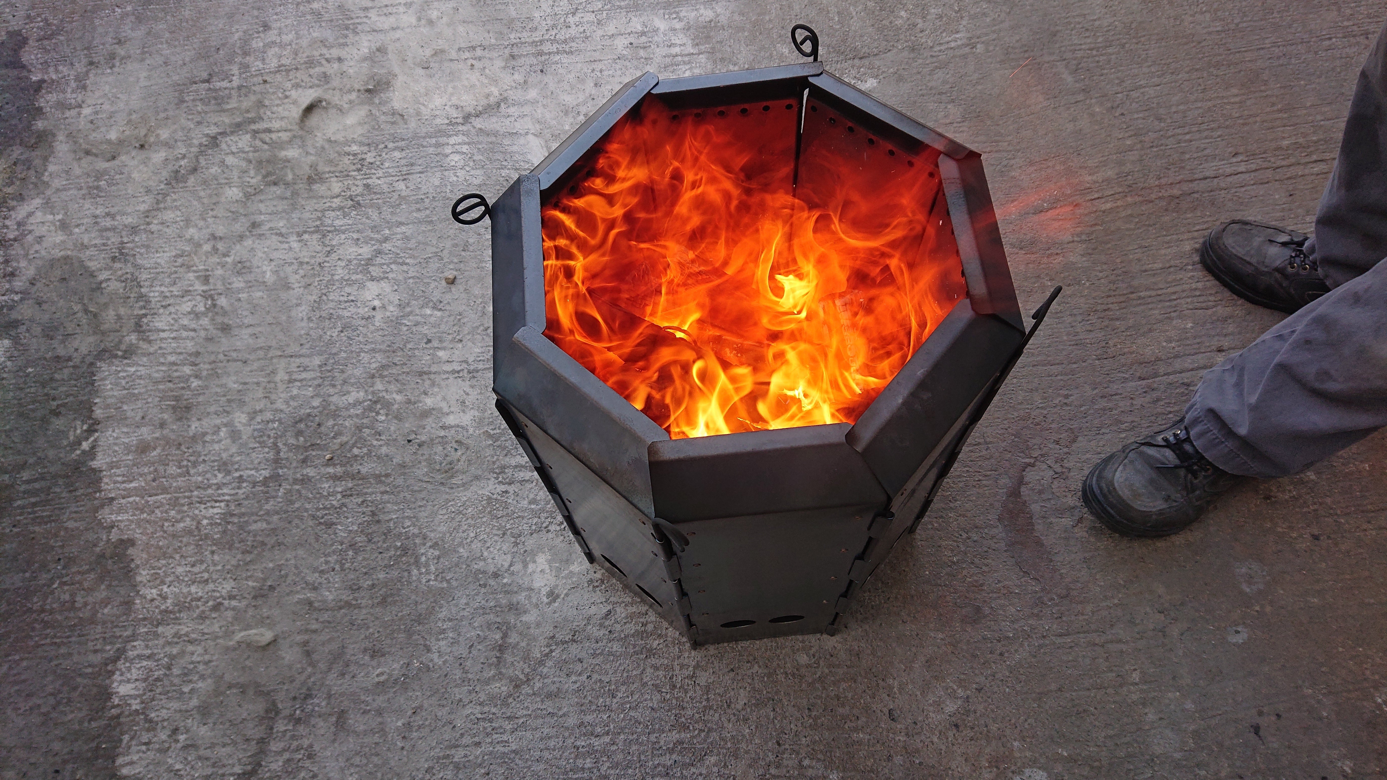 新製品開発プロジェクト、『焚火台、ファイヤーウッドバーナー』の進捗報告