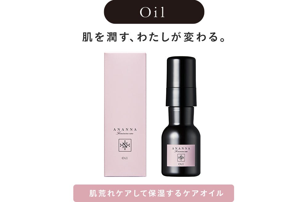 デリケートゾーンは常に肌と布の摩擦がおきる部位のため、ムレが起こりやすく、クリームタイプでは水分が残りやすいため不快感につながります。ANANNAフェミニンケアオイルは浸透性がよく、肌もやわらかくするオイルを採用しています。