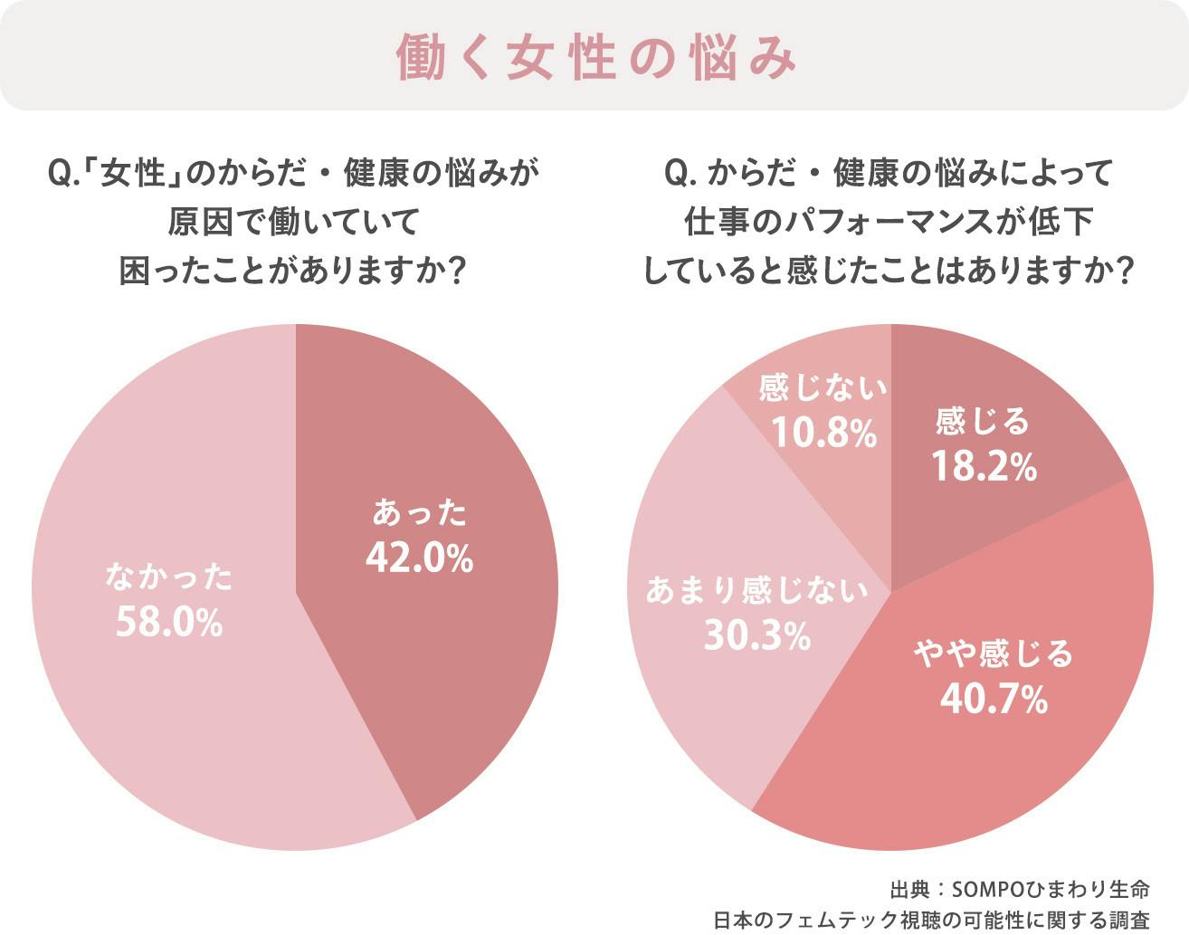 ・からだや健康の悩みが原因で働いていて困ったことがある女性は「42%」
