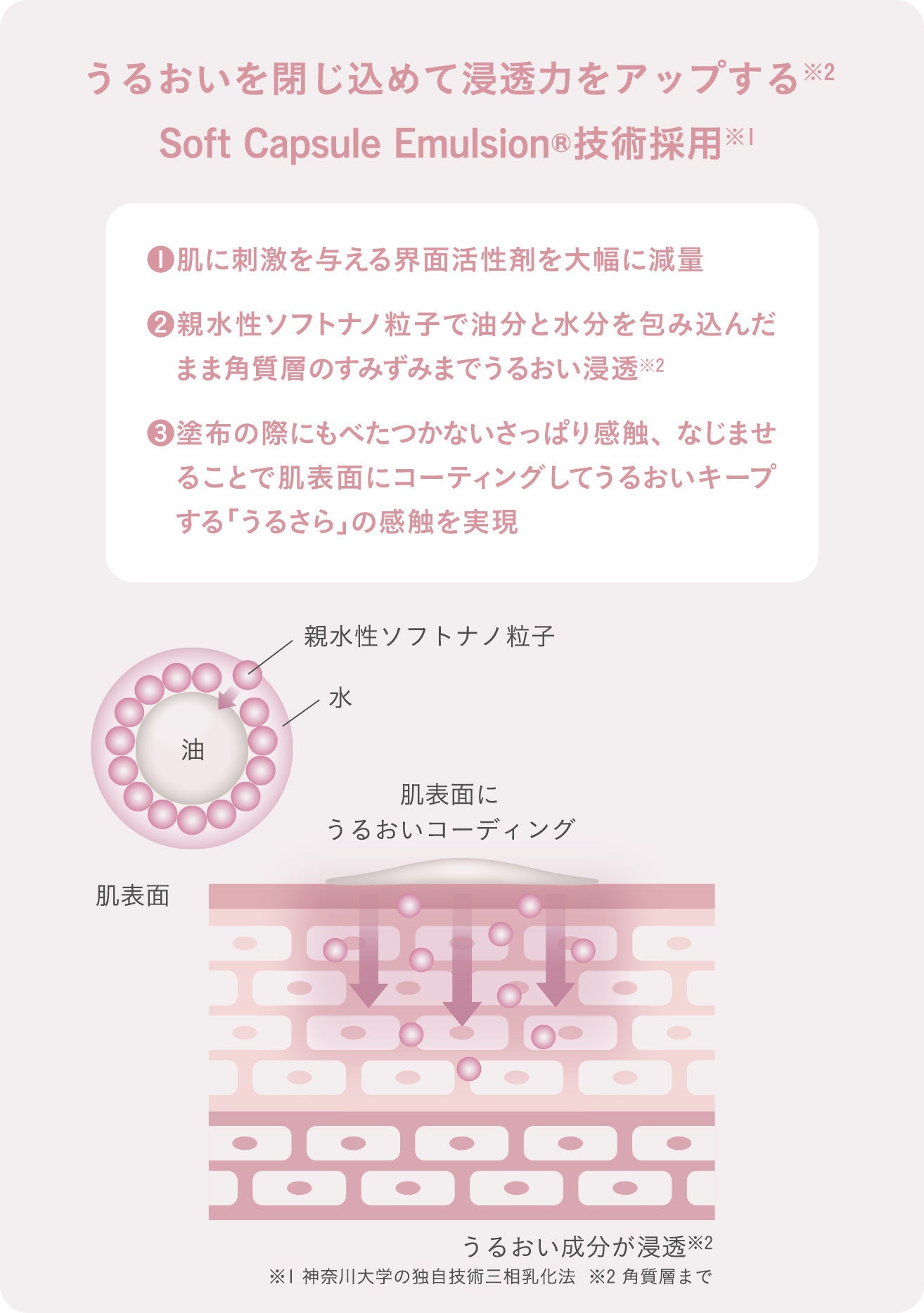 ■潤うのにベタつかない、日本初のSoft Capsule Emulsion®技術*採用