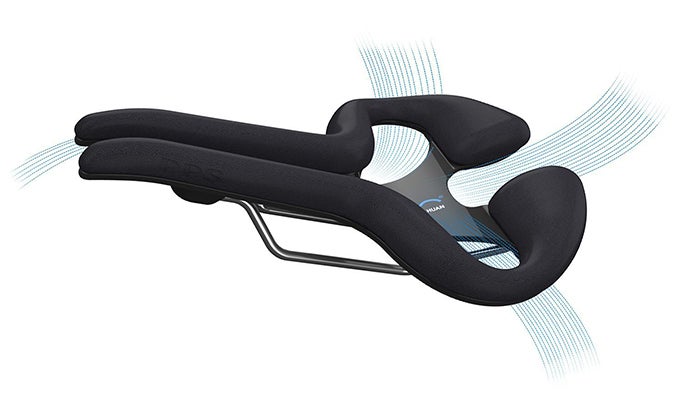 A1:特に長時間の走行では痛みを軽減させます。ここで言う痛みとは、「サドル痛」(サドルとお尻の接触によって起る圧迫痛)を指しますが、PPS-Ⅱはその特徴であるサドル中央部の溝形状によりサドル痛の原因となるお尻とサドルとの接触を取り除いています。※クッション性を高めサドルを柔らかくする事で痛みを軽減させるものとは相違します。
