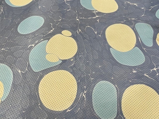 古来より伝わる染色技法の変遷の延長上に現代の墨流し染があります。繊細な神経と熟練した技が必要とされ、現在でも描くことができるのはごくわずかな職人だけです。日常生活を豊かに彩るデザインはまさに同じものは二度とできない、一期一会の出会いです。その技法と思いを継承していくためにも、今回、鹿革に墨流し染めを用いることを決めました。
