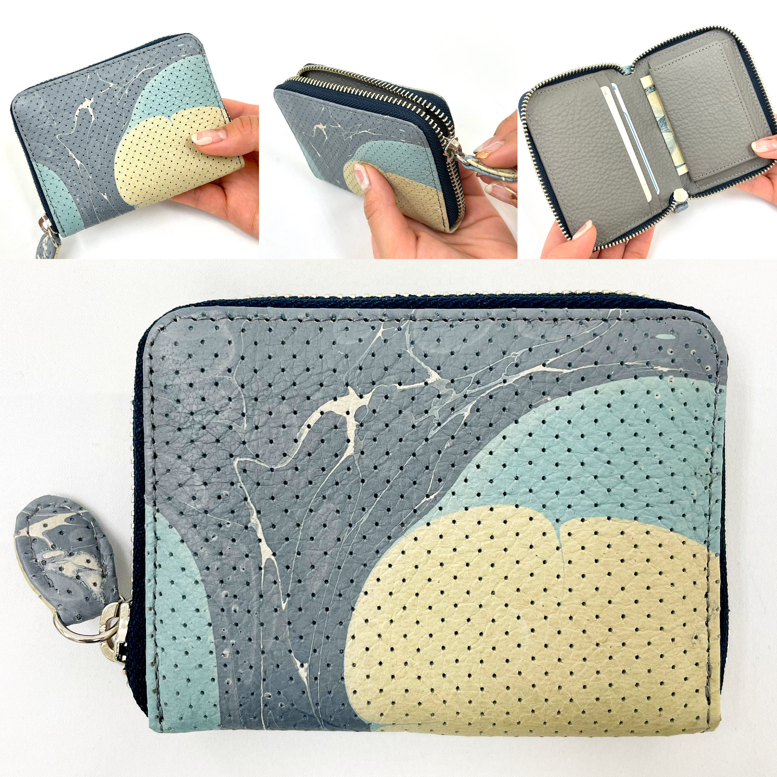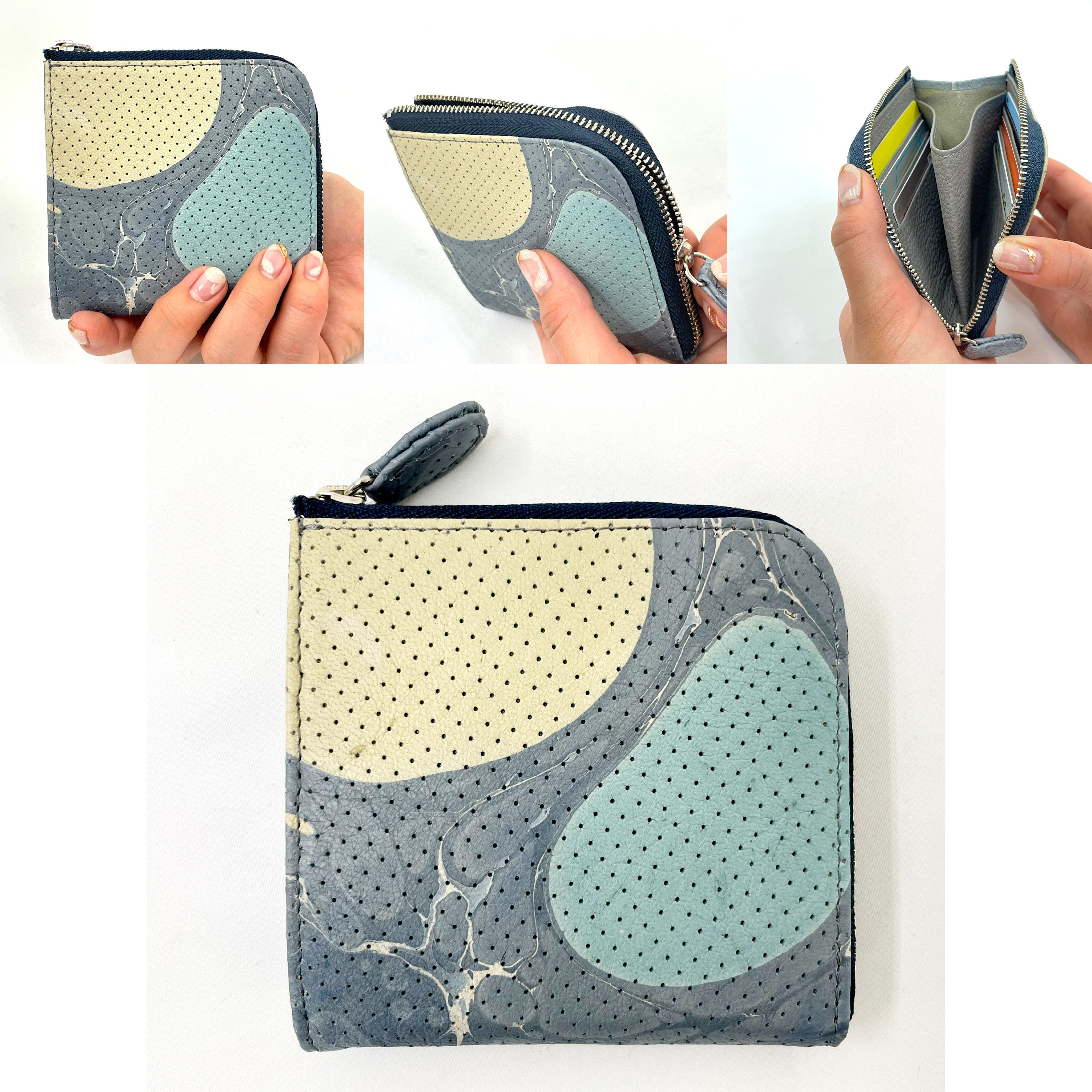鹿革墨流し染め財布