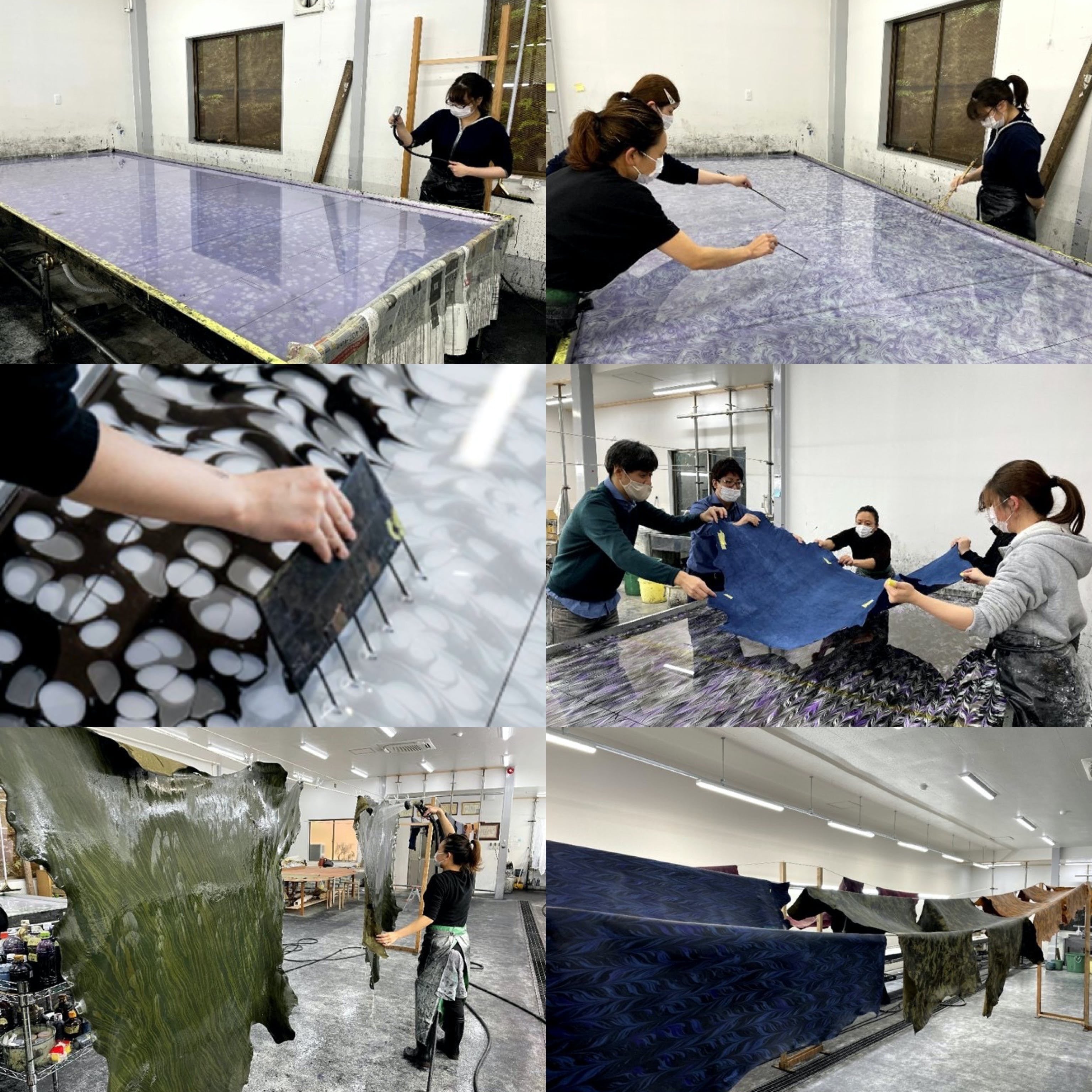 一言に墨流し染めといっても、簡単には出来上がりません。染料の調合、職人による模様作成、革染、染料の水洗い、乾燥、色止め、縫製などなど沢山の工程を経て、他にはない新たな製品が出来上がります。一つ一つが技術を要し、少量生産の丁寧なものづくりは過去から現代まで継承されてきました。この技術や思いは、未来へと受け継がれていく必要のあるものではないでしょうか。