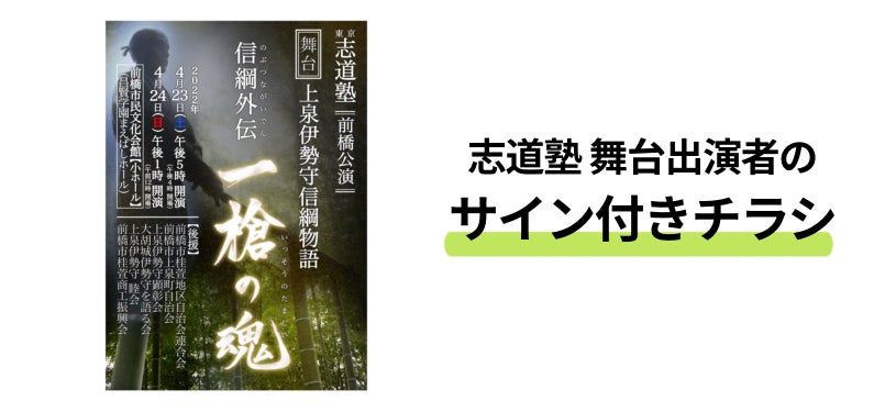 2,000円 お礼のメール、「上泉伊勢守信綱公を全国区に!」パンフレットにお名前を記載、志道塾出演者のサイン付きチラシ