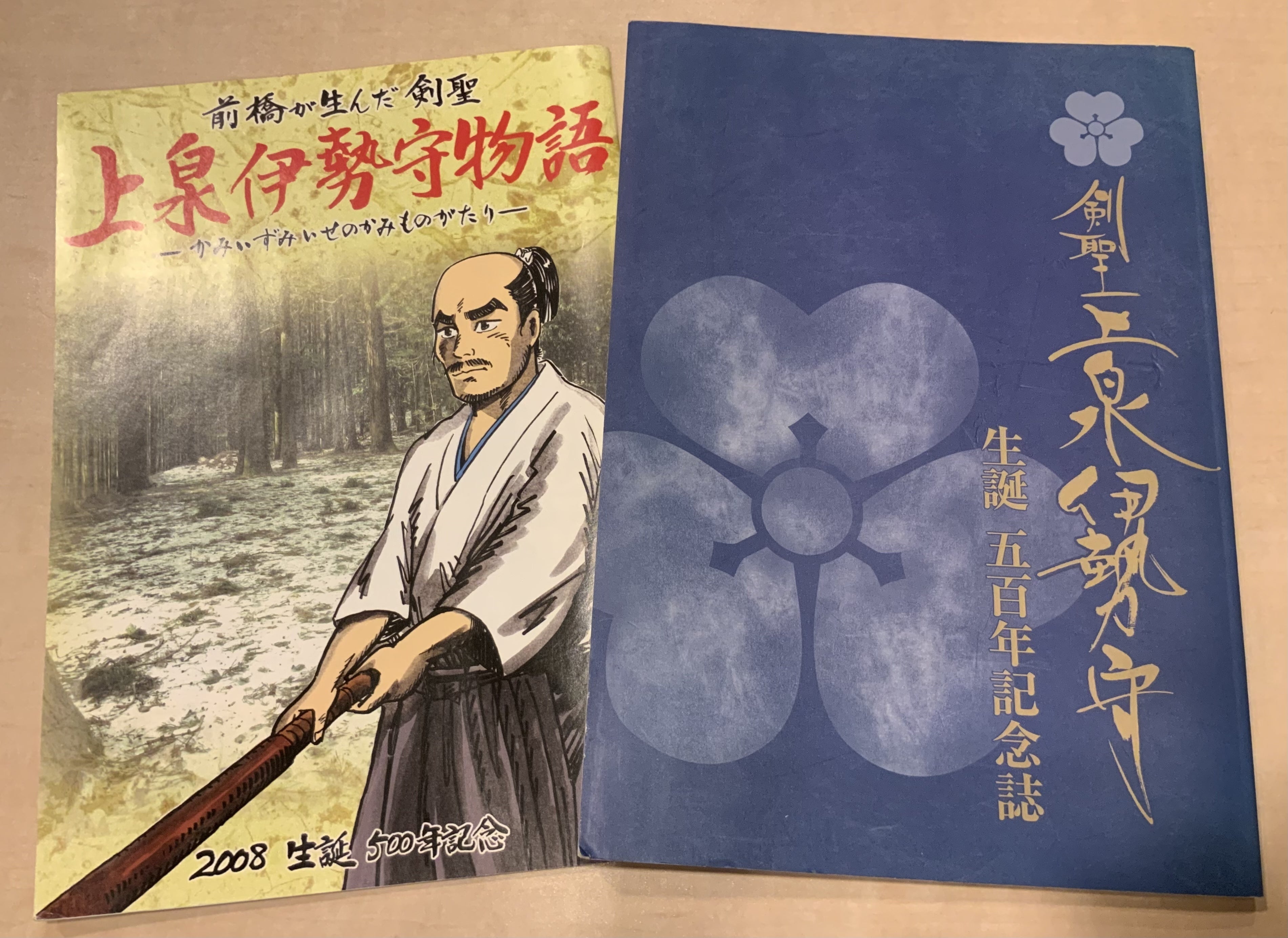 上泉伊勢守信綱公を知る上で特に勉強になったのが、剣聖上泉伊勢守生誕500年祭記念誌と500年記念の時に作られた漫画です。記念誌は柳生新陰流を継承している方や上泉伊勢守の御子孫、歴史学者の方など多方面から史実や考察、体験談が書かれてる冊子で、今は入手できないとのこと。上泉の自治会長さんが貴重な1冊を譲ってくださいました!