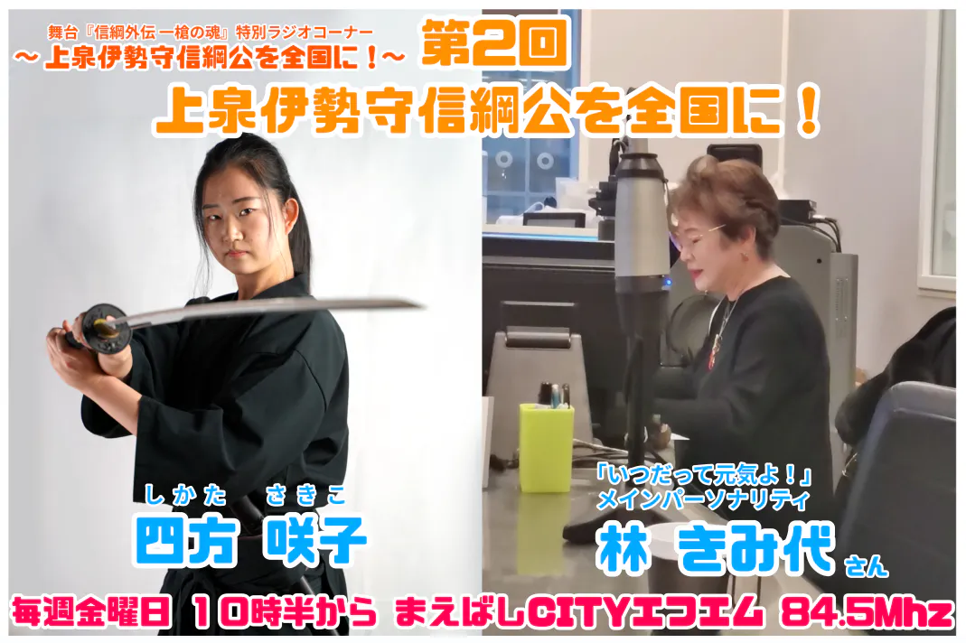 そして、私自身初めてのラジオで緊張していましたが、「いつだって元気よ!」のメインパーソナリティ林きみ代さんがペースを作ってくれたため、途中からは気持ちを落ち着けてお話をすることができました。林さんご自身も上泉伊勢守と関係が有るとのこと!是非放送を聴いてみてください!