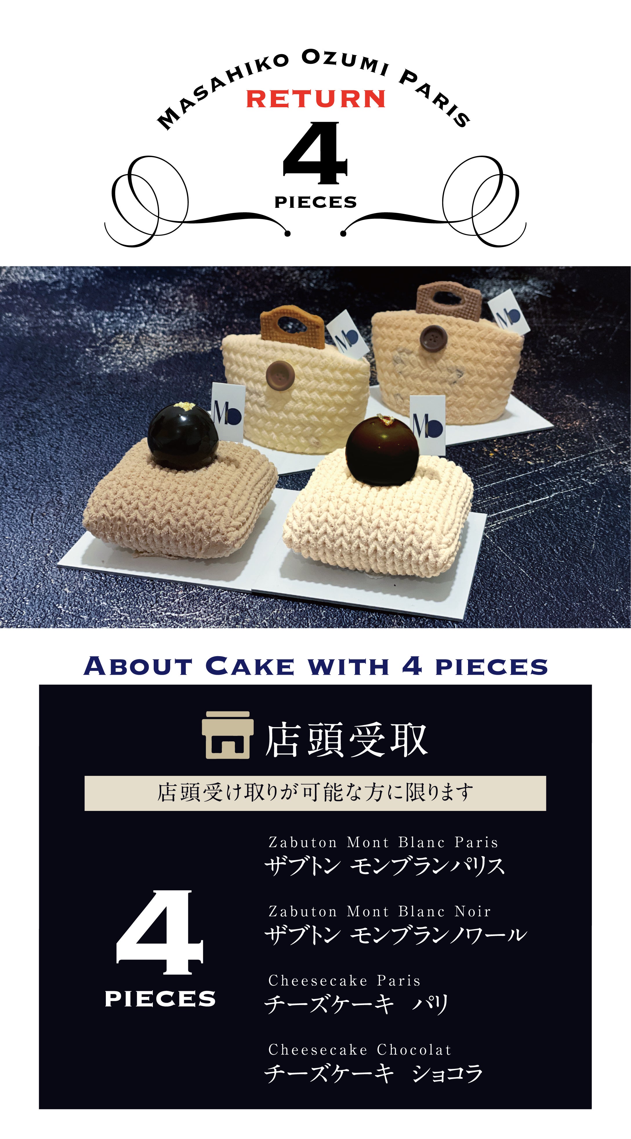 帰国後は、Masahiko Ozumi Parisのケーキを皆さんに食べて頂きたい、自分が作るケーキで皆さんを幸せにしたいという思いで休む間も惜しんで働いて来ました。ですが、このままでは皆さんに自分が作ったケーキを食べて頂けないと思い、今回このような決断をしました。