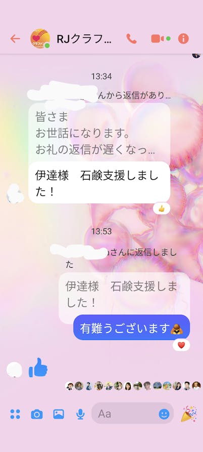 おそらくクラウドファンディングをやられて、同じ価値観をお持ちの方々が集まっているグループなので想いも一緒なんだなぁ~と感じ、目に見えない繋がりを感じました。