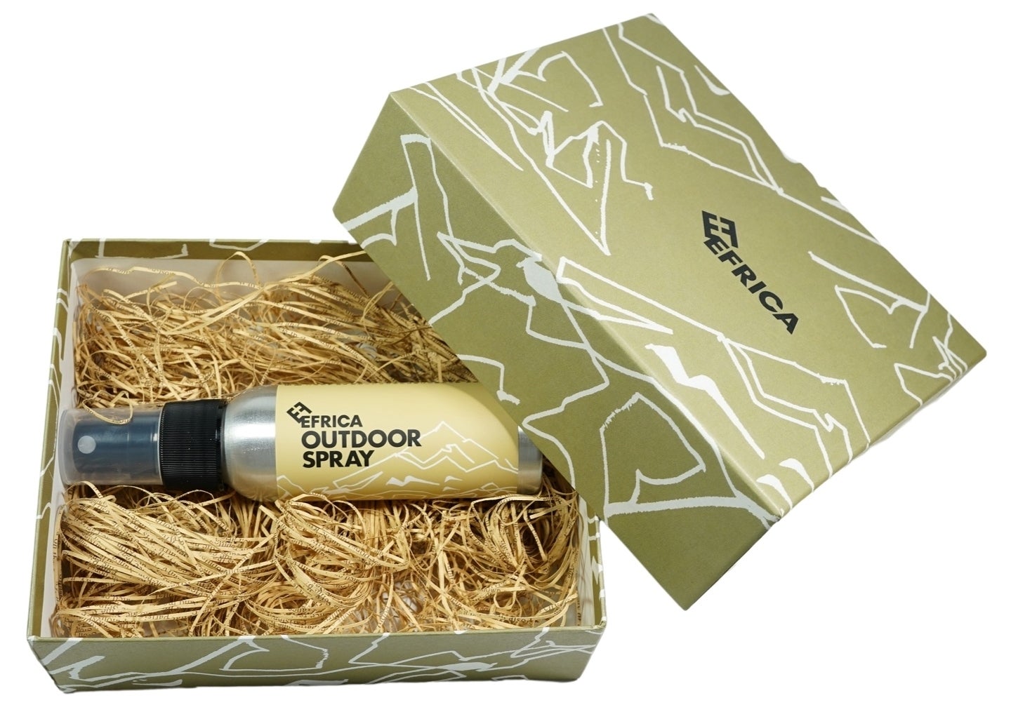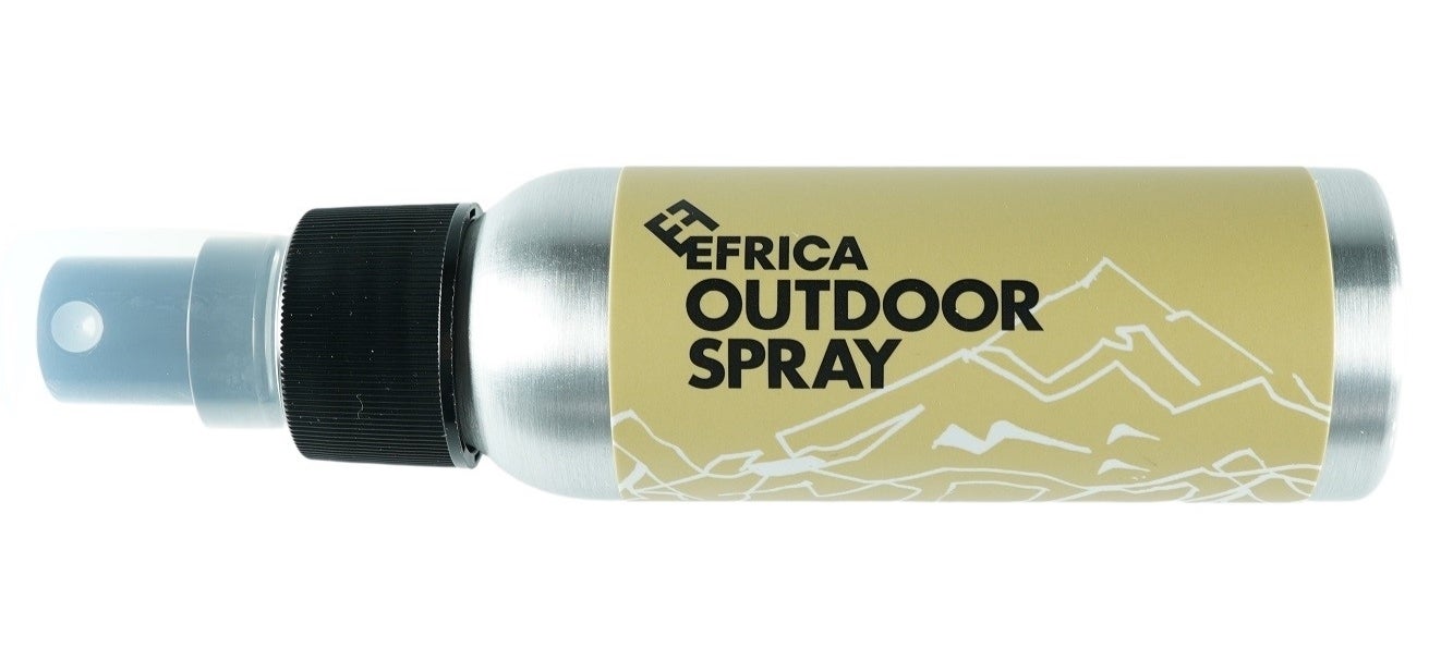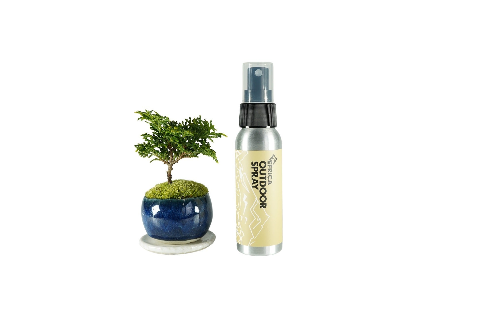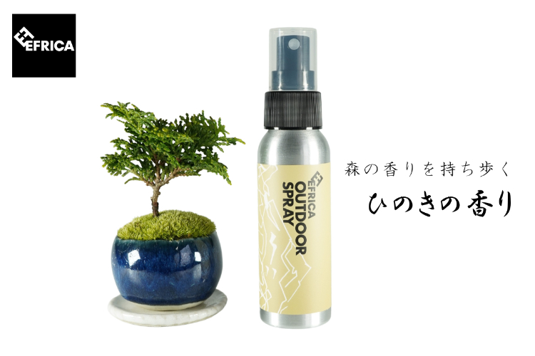 EFRICAアウトドアスプレーはひのきをベースに、清涼感のあるハッカ、ユーカリ、シトロネラを配合しています。アウトドアでのスキンケアの他、ルームスプレー、ピロースプレー、マスクスプレーなどとして男女、年齢問わず通年使える製品です。