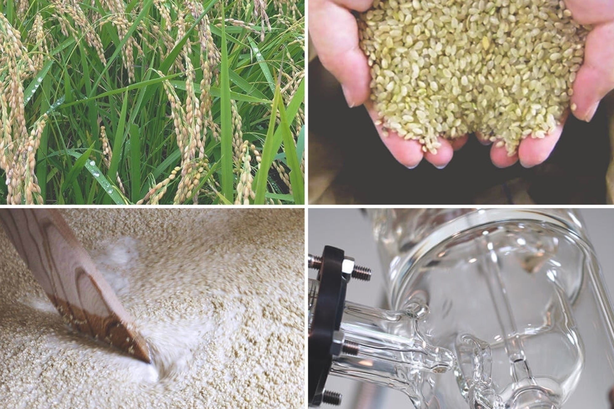 今回、プロダクト開発をしてくださった株式会社ファーメンステーションは、奥州市内にある休耕田で栽培された有機JASオーガニック米を発酵・蒸留してエタノール(アルコール)を製造している会社です。残った発酵粕も化粧品の原材料に使用するほか、鶏や牛の餌に活用し、さらにその鶏糞や牛糞は畑や田んぼの肥料にするなど、ごみゼロ、サスティナブルな取り組みを実践しています。ファーメンステーションは製造したエタノールを化粧品会社などへ提供するほか、発酵粕である米もろみ粕から石けんなど、自社商品も開発しています。体に優しく、環境にも配慮した方法で、スキンケア用品やアロマなどのプロダクト開発・販売を行っている会社です。