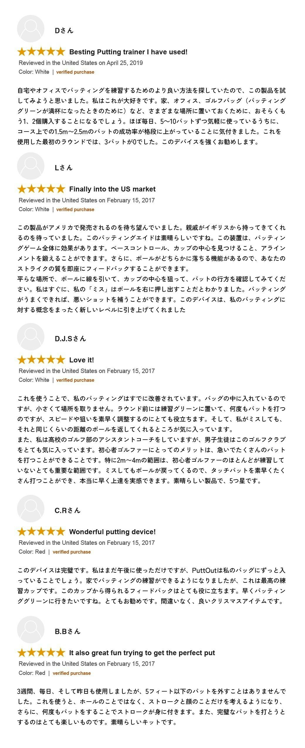 アメリカAmazonでいただいているレビューの一部を掲載します