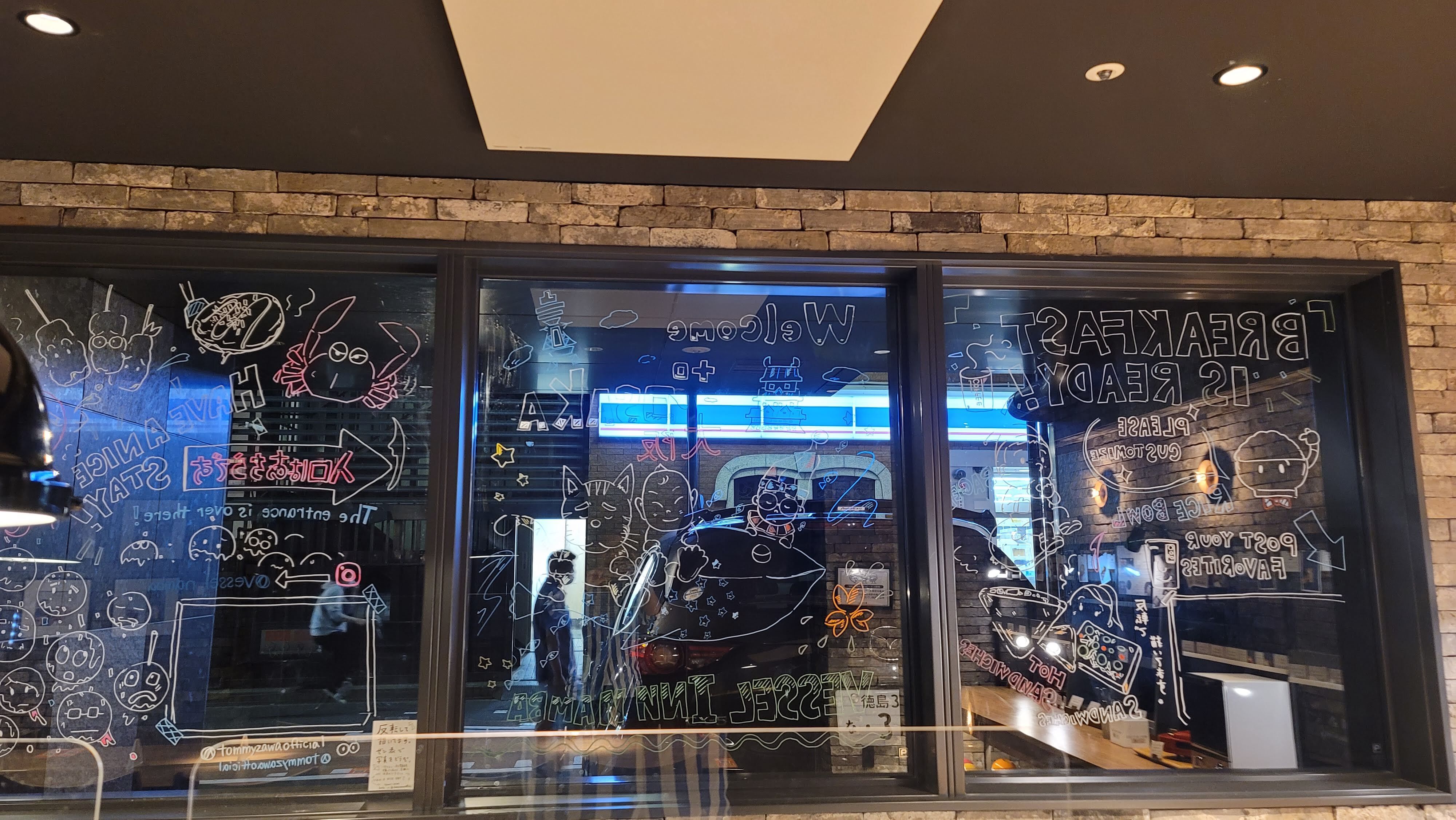 ※ガラス一面、または鏡一面にライブドローイングをやります。