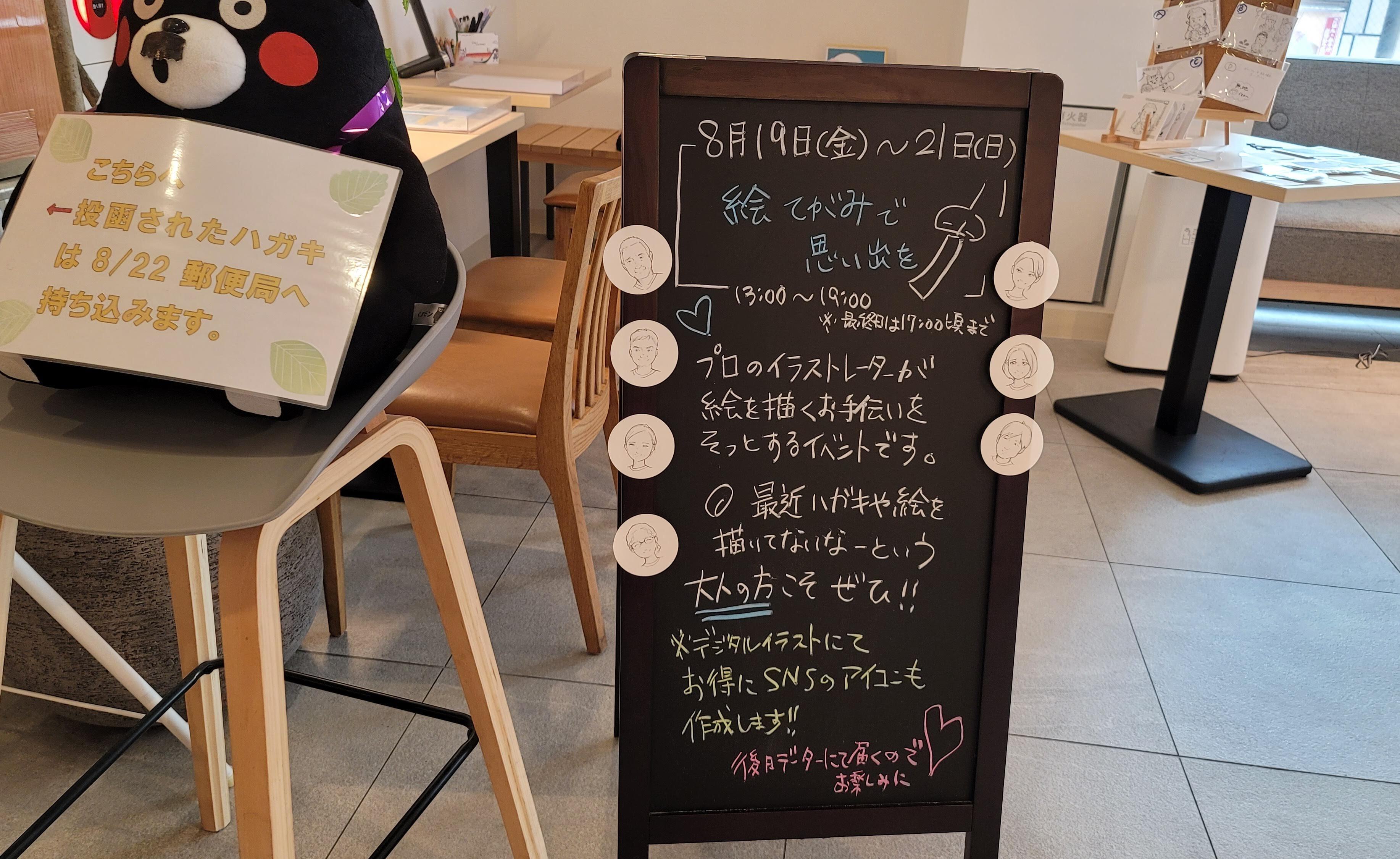 あわせて、絵を描くことでの「癒やし」「ストレス解消」をやんわりとお手伝いできるように、「くまもと県民カレッジ認定講師」として活動しています。定期的に「お絵描き会」を実施。夏には、ホテルでもワークショップも行いました。