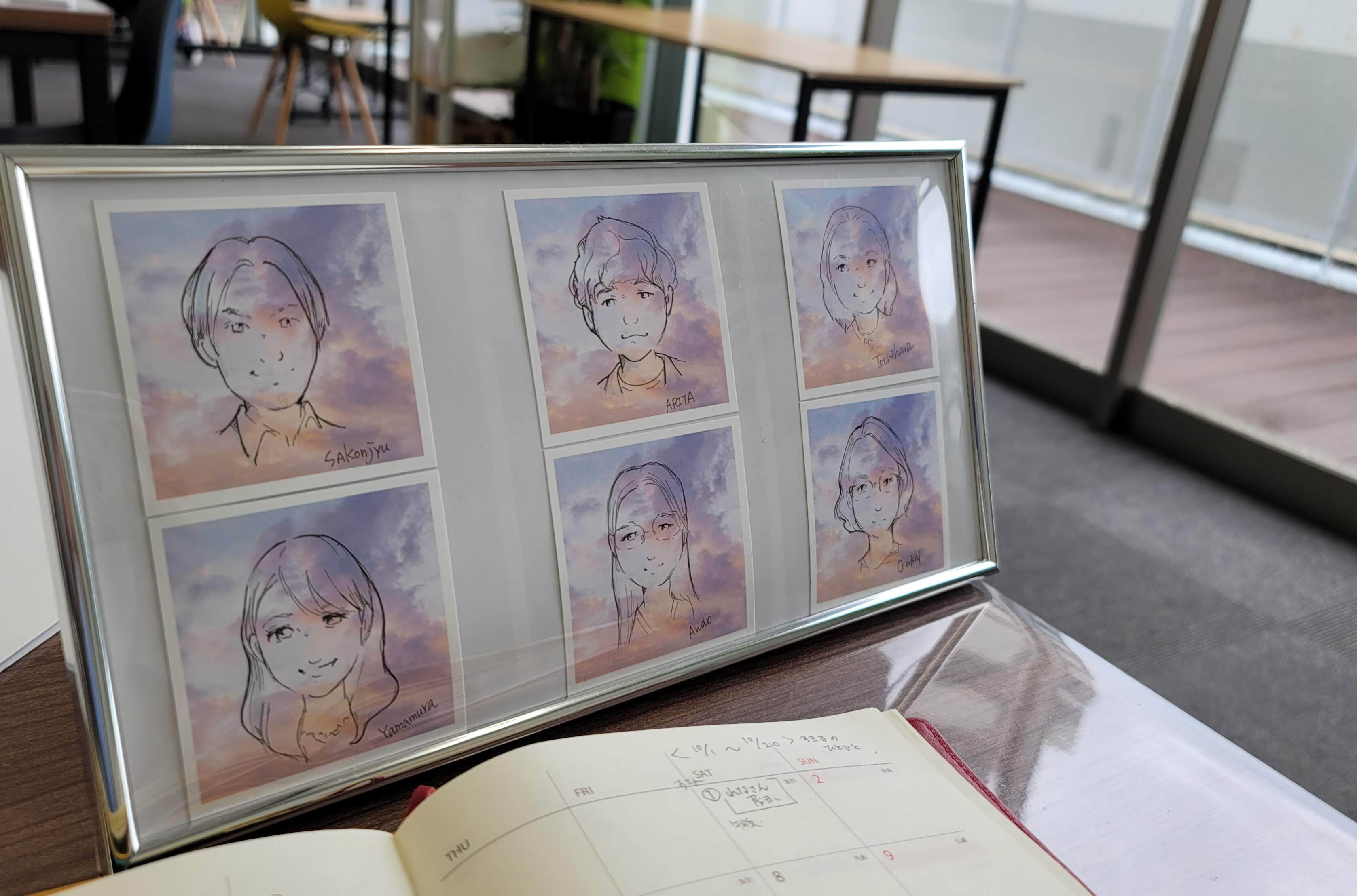 ・名刺サイズ大のフレーム付きで、ミニ似顔絵をペン・線画で描いてお届けします。順番に連絡をして、出来上がり次第お届け予定です。