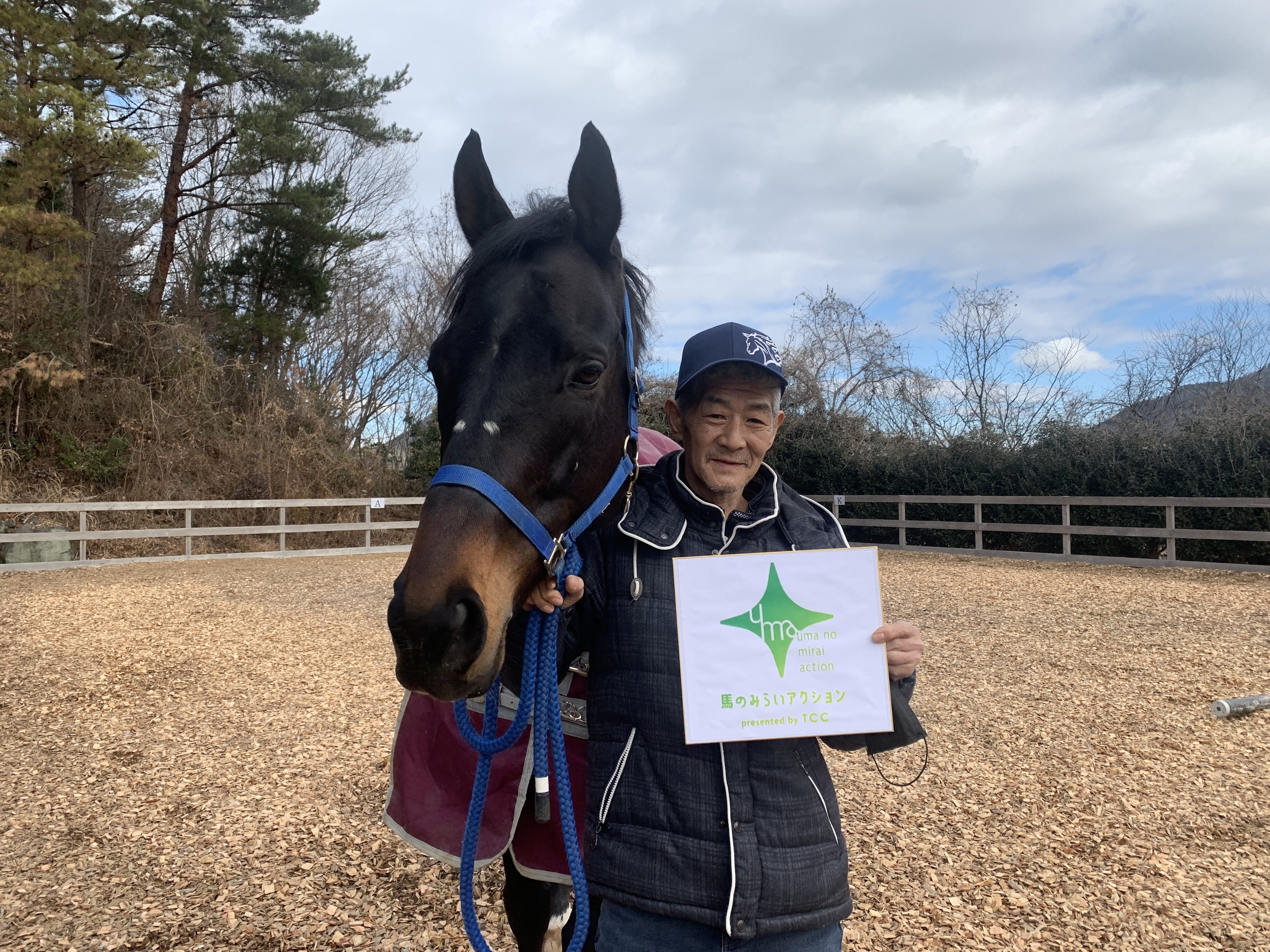 現在ホースシェルターに在厩している元担当馬のゴールドフラッグと共にウマミラPRのための写真撮影に協力していただきました。