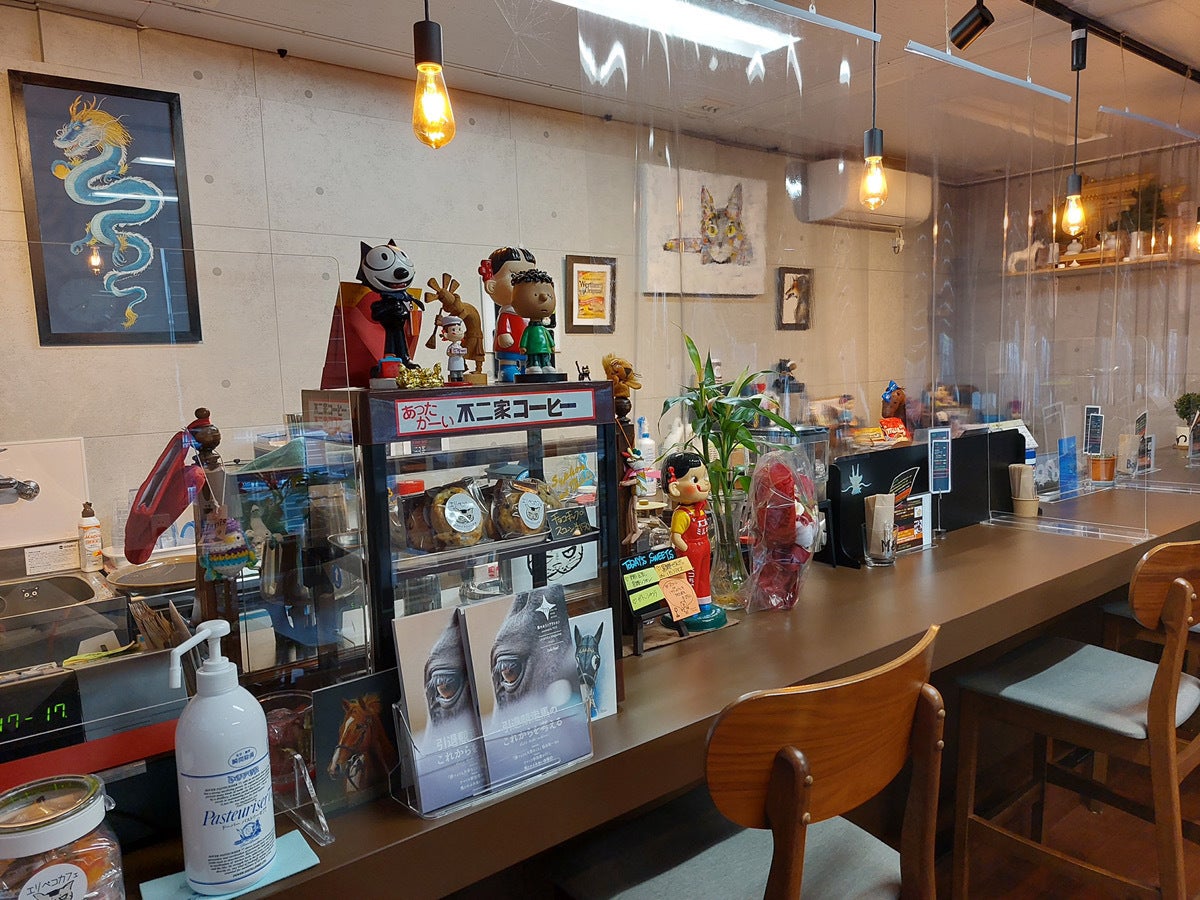 沖縄県うるま市にある競馬の素晴らしさを伝えるカフェ『エリペコ カフェ』様にも設置協力を頂きました。募金箱も用意してくださいました!