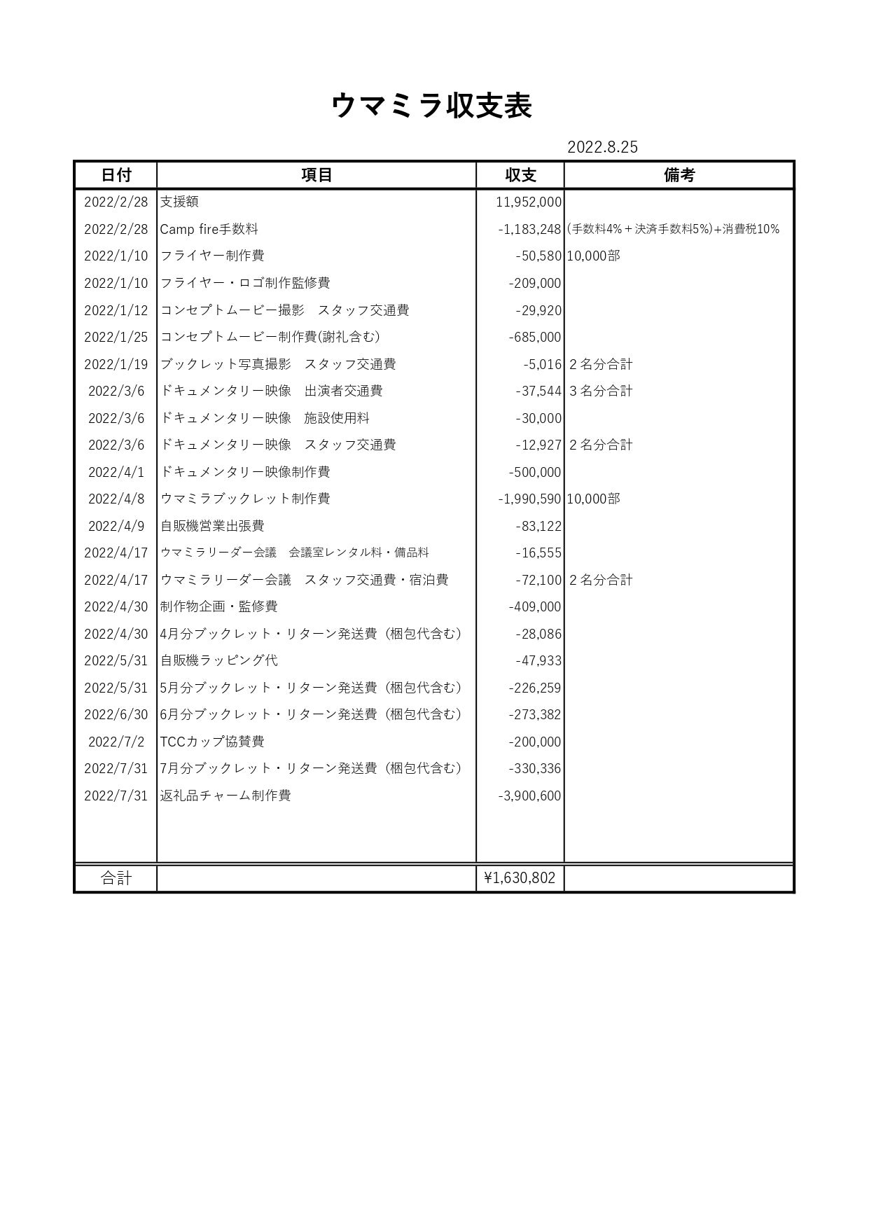 7月で、ご支援いただきました支援者様へのリターンの発送が終わり、発送費・制作費等が確定しましたので、現在の収支をご報告いたします。