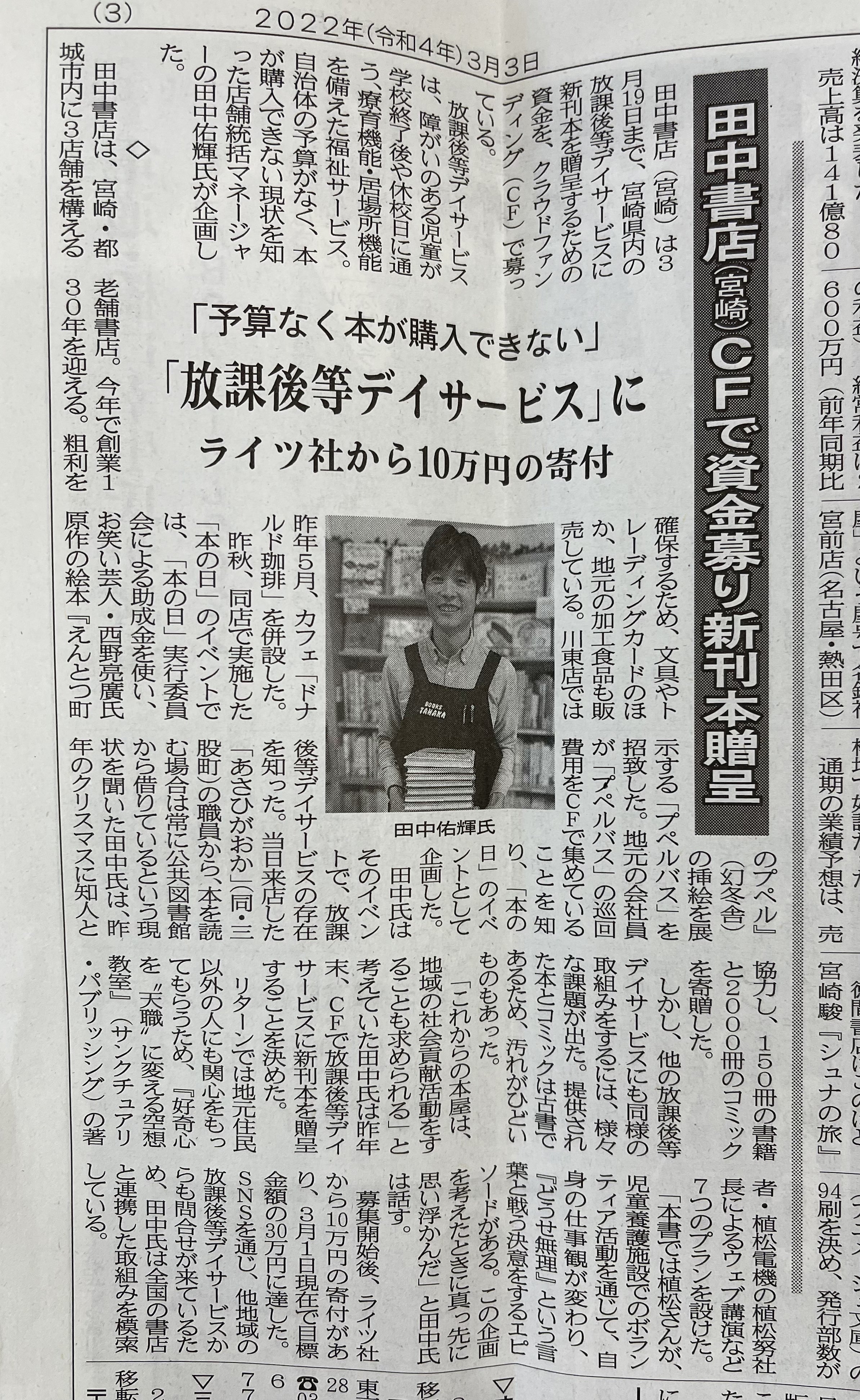 今回は、全国の本屋の経営者が読む、出版業界の新聞に掲載されたご報告です。