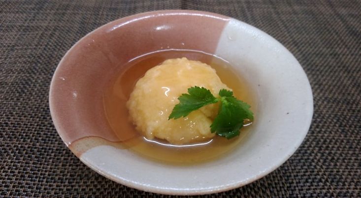 【海老のしんじょ甘辛あんかけ】 ビスクとはんぺんを混ぜてあんかけに。