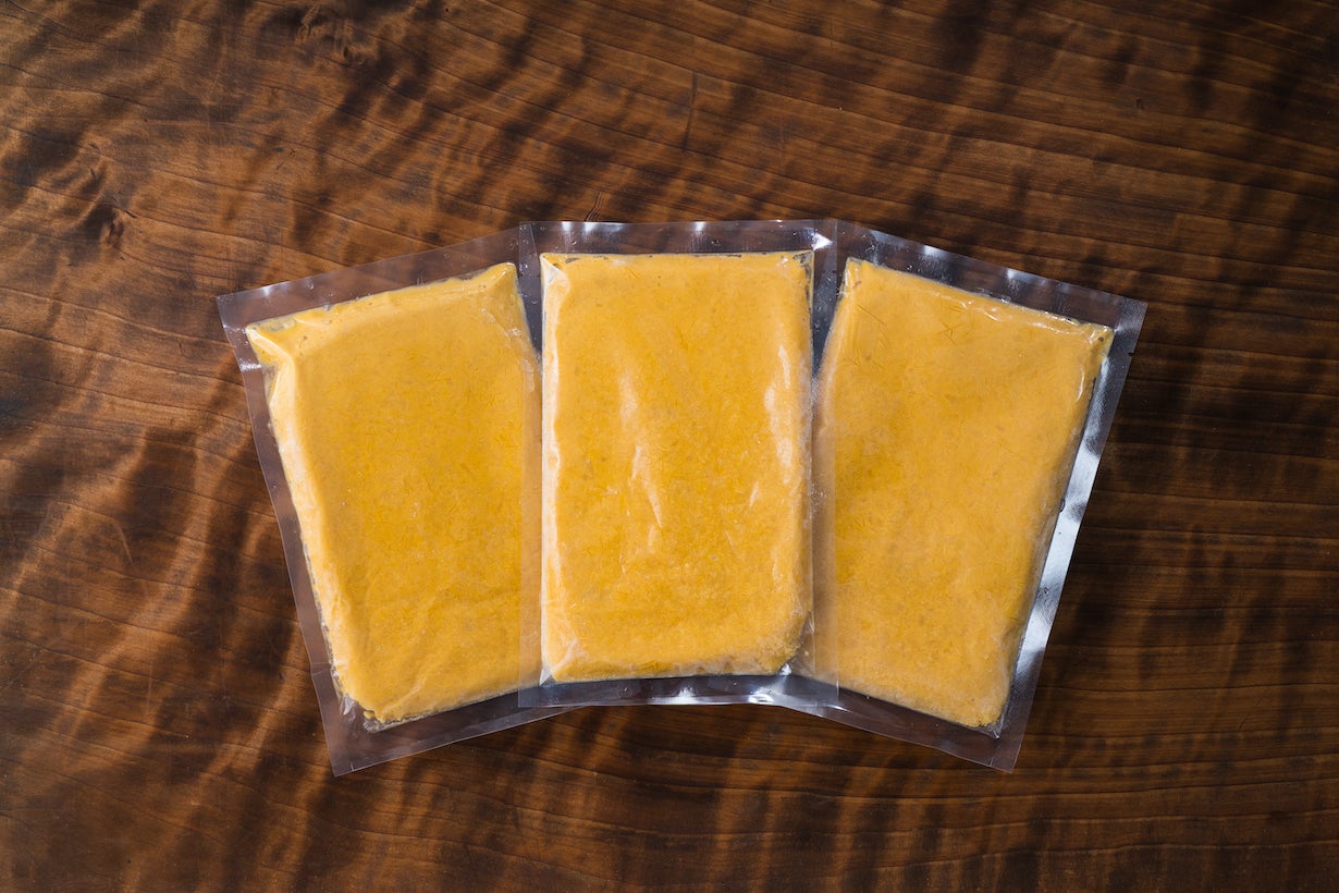 ビスク1袋に約50匹分の頭の出汁が入っています。身は9匹入っています。
