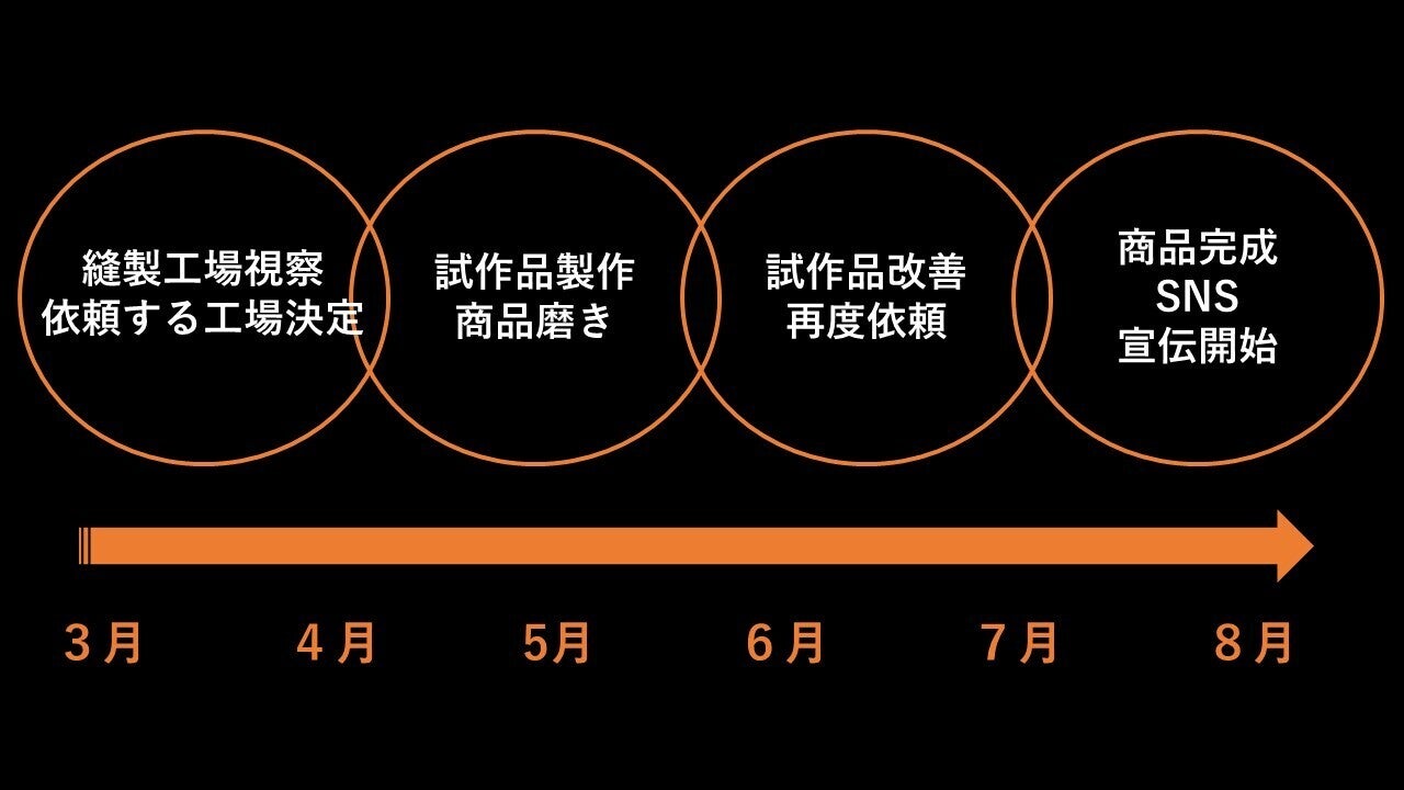 生地にこだわっていて、デザインも複雑であるため、概算見積り表の通り、単価がとても高くなりそうです。弊社は様々な縫製工場を回り、ロット数や生産費用の交渉などをしてコストを抑え、できるだけいいものをお客様に提供できるように努めます。以下今後の目標です。