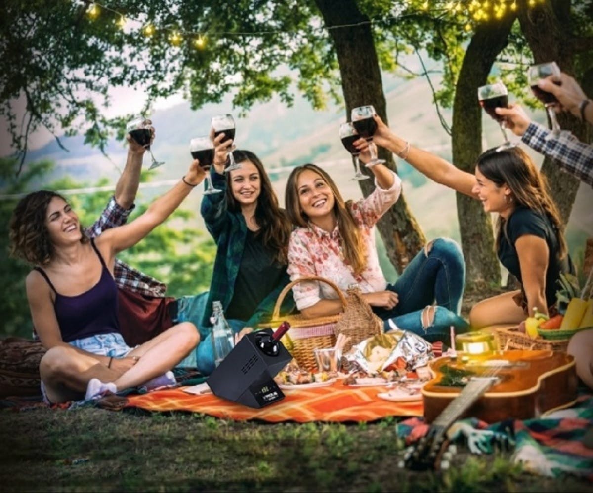 しかし飲み始めた後、ワインボトルの温度は刻々と変化していきます。氷で冷やす方法では温度管理ができませんし、特に赤ワインは、かえって冷えすぎて味を損ねてしまうという事も起こります。また、ワインセラーは持ち運ぶ事が困難、屋外は元より、就寝前にベッドルームで適温ワインを少々....という手軽さはありません。