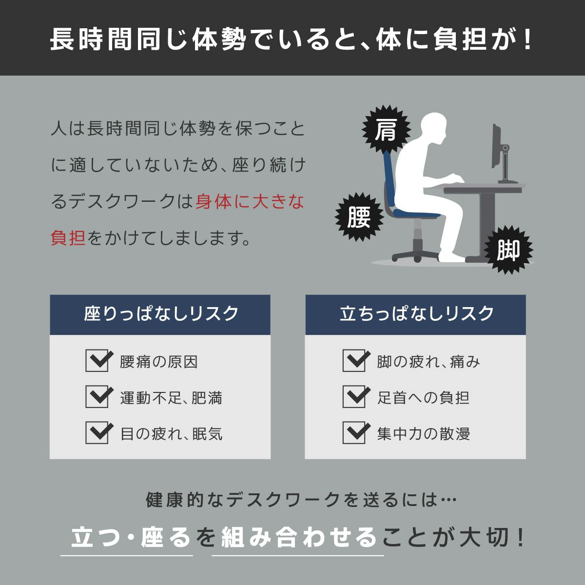 ②長時間同じ体制でいると身体に大きな負担を軽減できるデスク