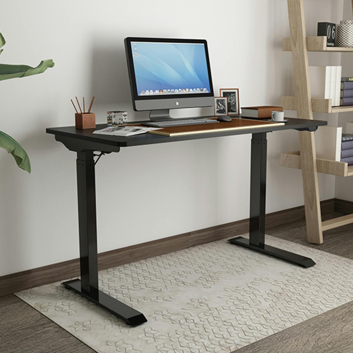 ①自分の高さに調整自在!立って!座る!電動昇降デスク